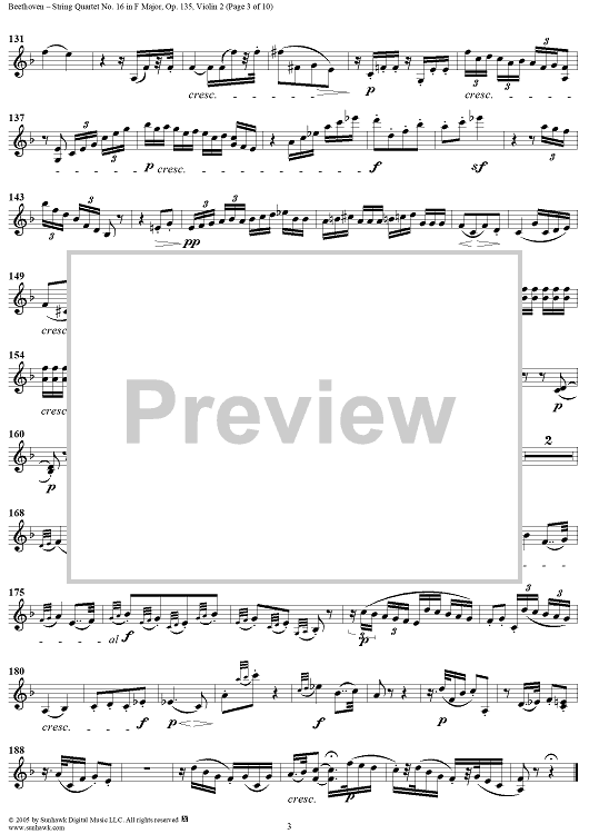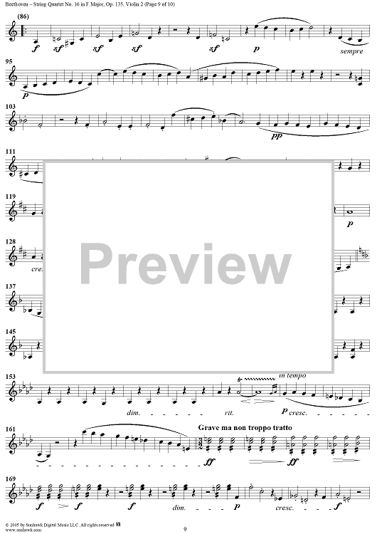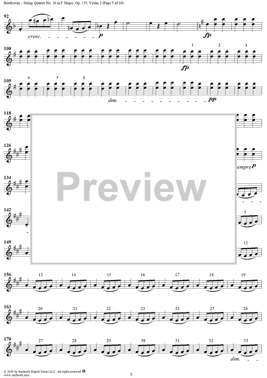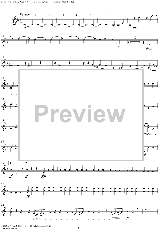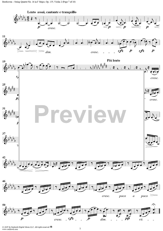 Digital Sheet Music for String Quartet No. 16 in F Major, Op. 135 - Violin 2 by Ludwig van Beethoven scored for String Quartet; id:308631