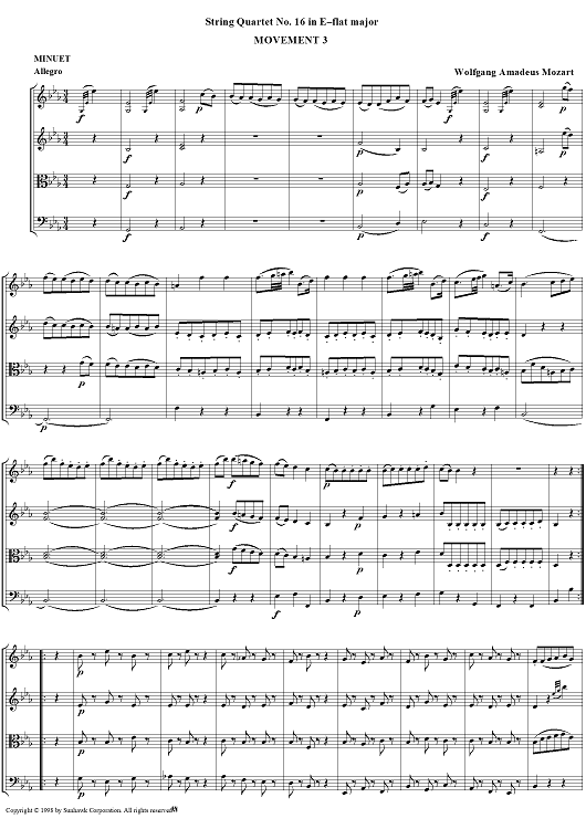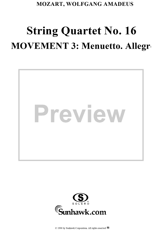 Digital Sheet Music for String Quartet No. 16, Movement 3 - Score by Wolfgang Amadeus Mozart scored for String Quartet; id:252621