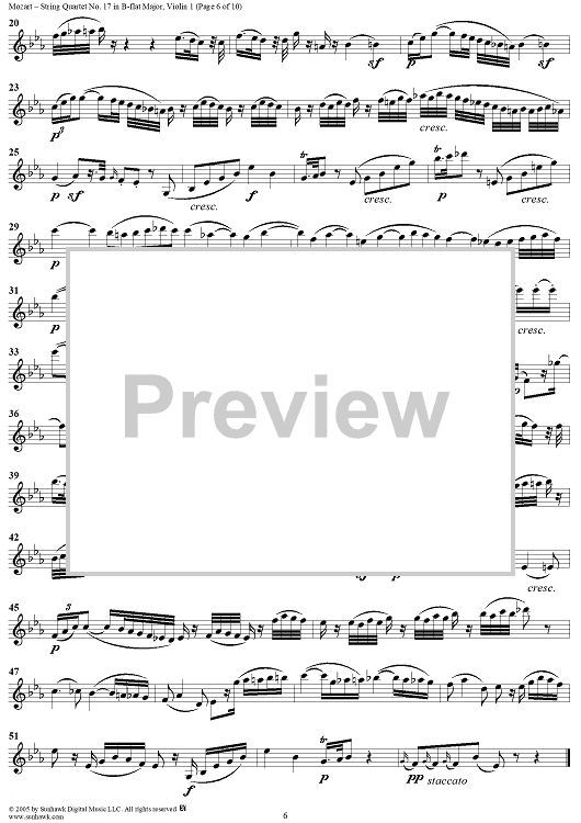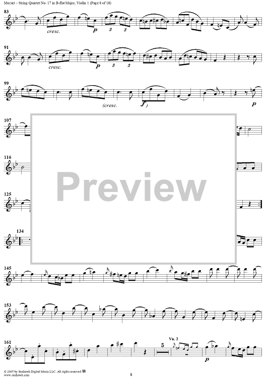 "String Quartet No. 17 in B-flat Major, K458 - Violin 1" Sheet Music by Wolfgang Amadeus Mozart
