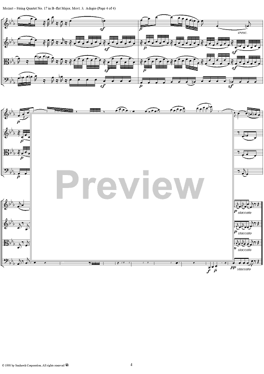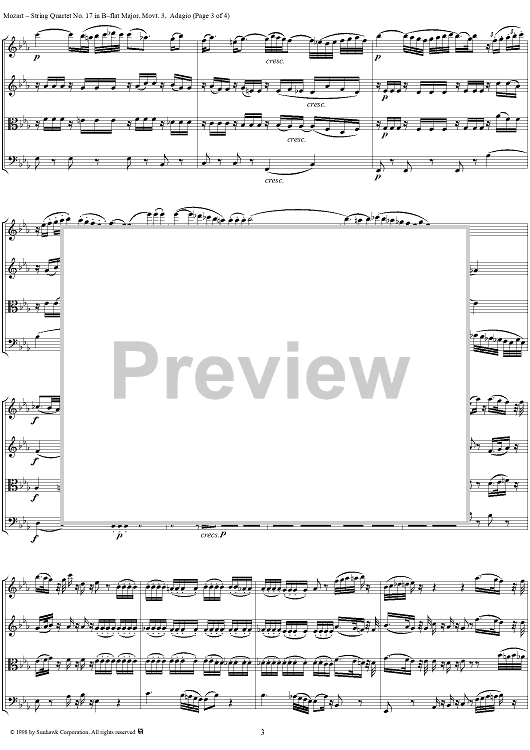 Digital Sheet Music for String Quartet No. 17, Movement 3 - Score by Wolfgang Amadeus Mozart scored for String Quartet; id:252620