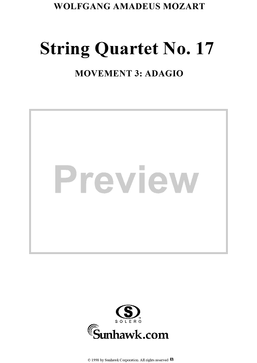 "String Quartet No. 17, Movement 3 - Score" Sheet Music by Wolfgang Amadeus Mozart