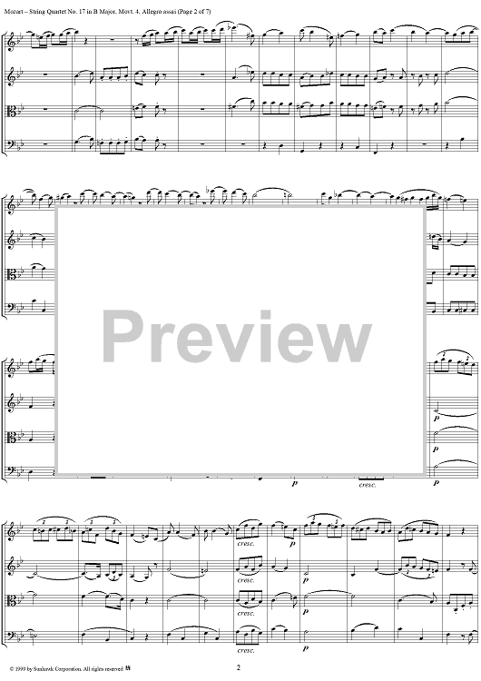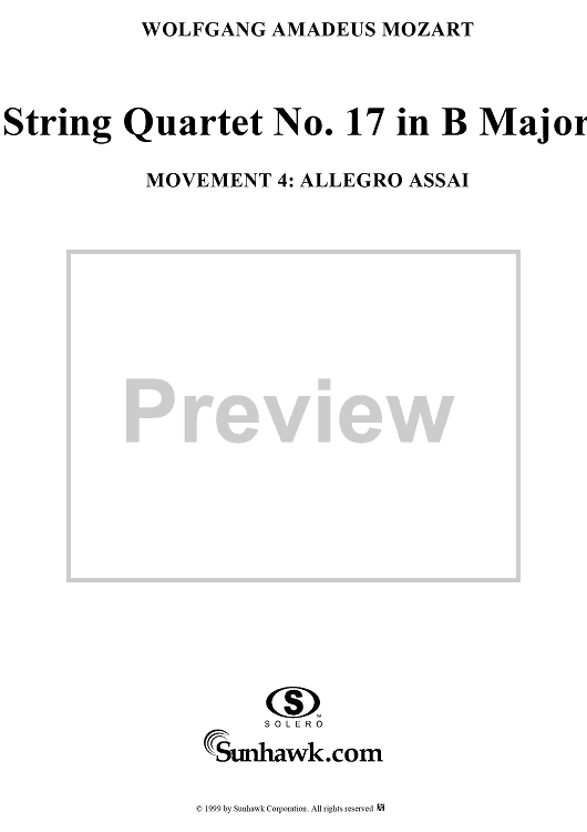 "String Quartet No. 17, Movement 4 - Score" Sheet Music by Wolfgang Amadeus Mozart