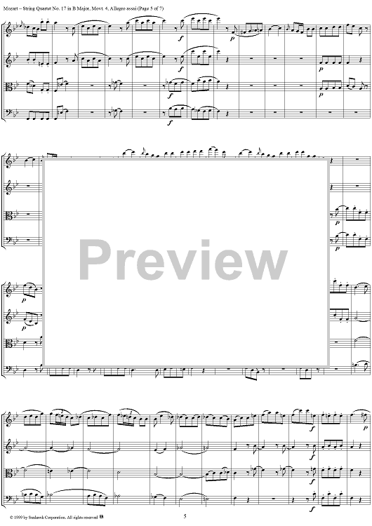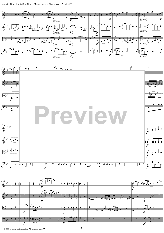 Digital Sheet Music for String Quartet No. 17, Movement 4 - Score by Wolfgang Amadeus Mozart scored for String Quartet; id:118559