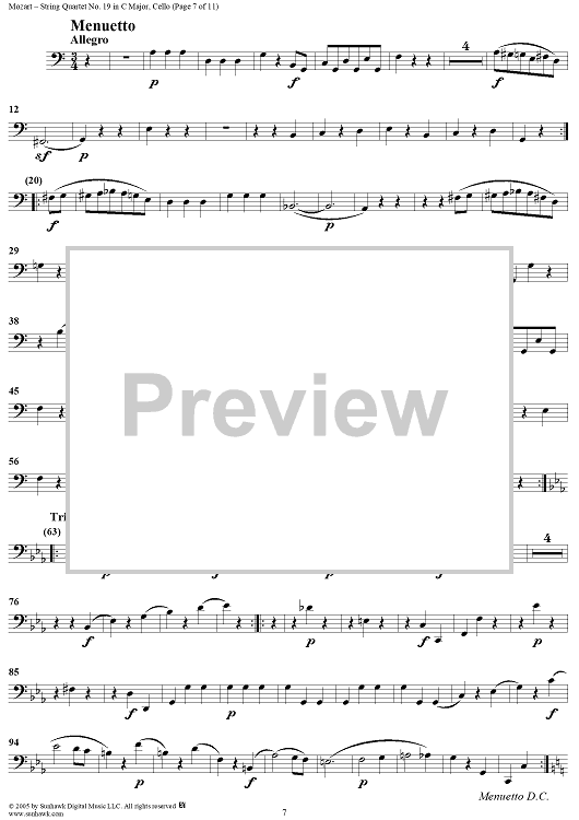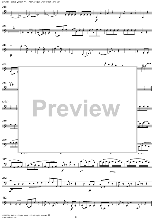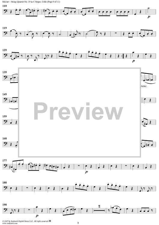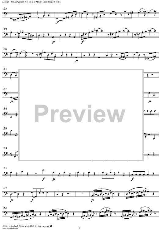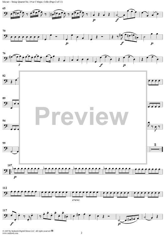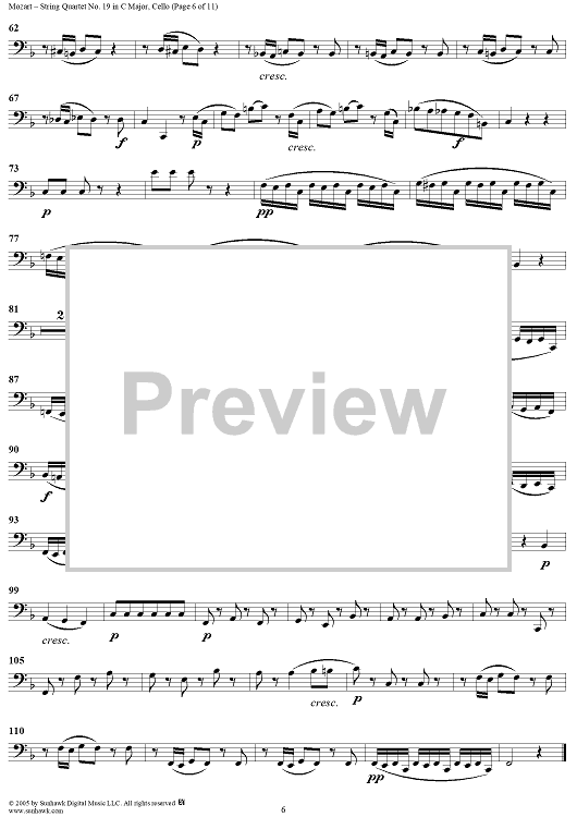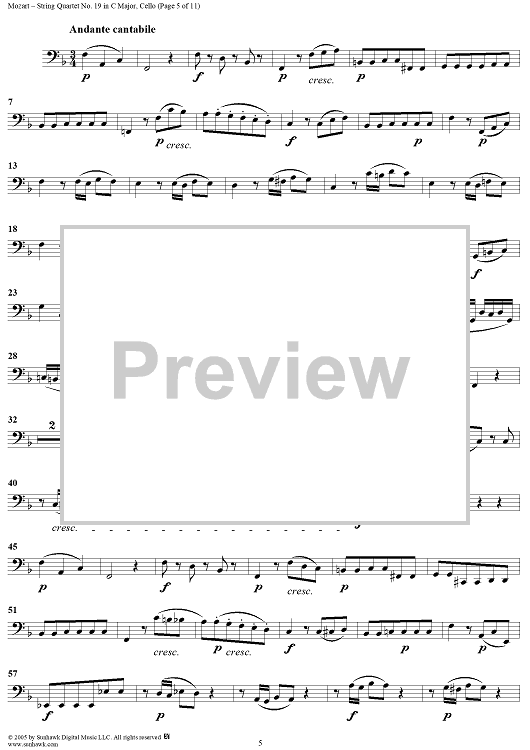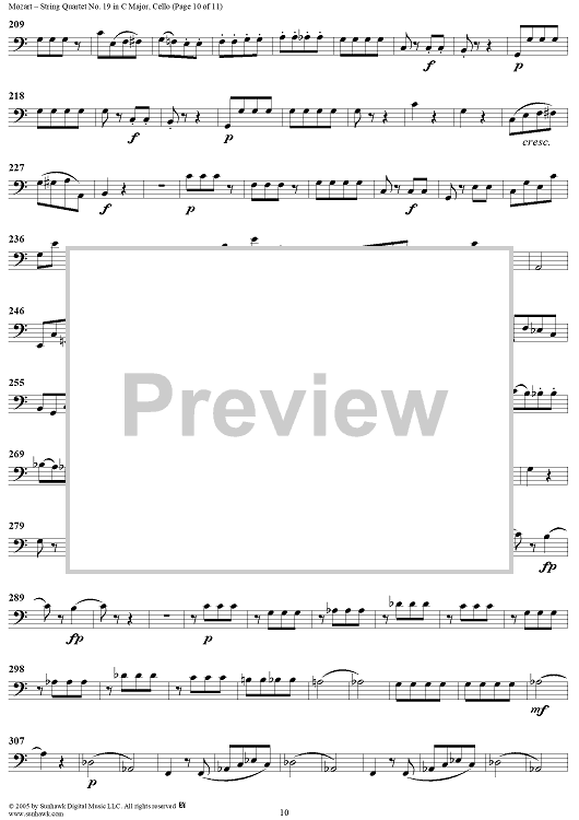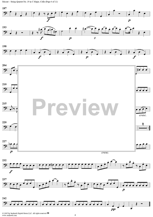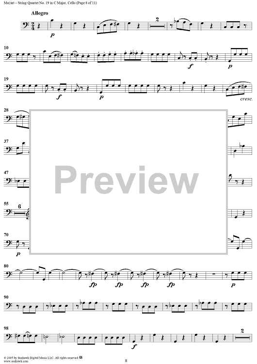 Digital Sheet Music for String Quartet No. 19 in C Major, K465 - Cello by Wolfgang Amadeus Mozart scored for String Quartet; id:309268