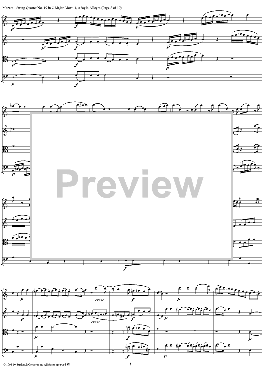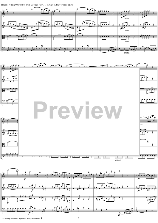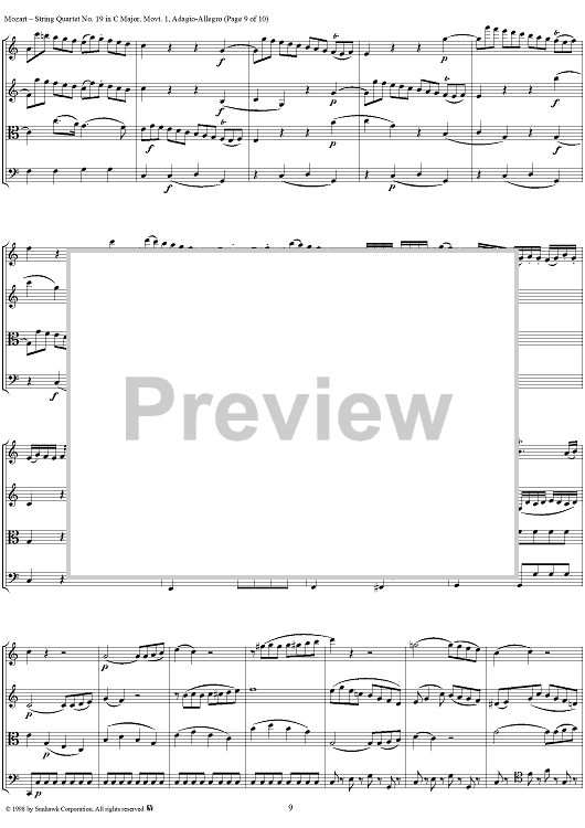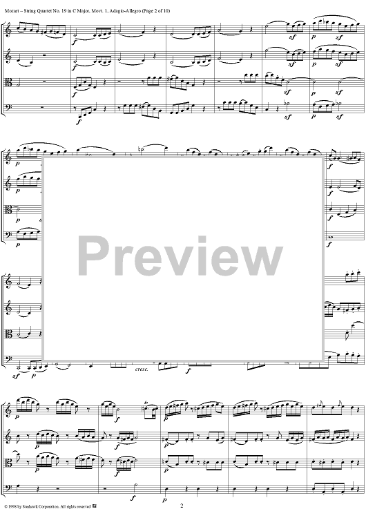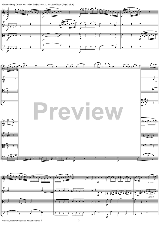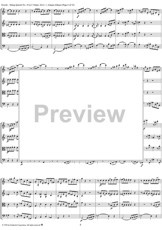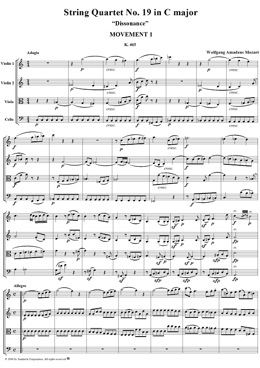 Digital Sheet Music for String Quartet No. 19, Movement 1 - Score by Wolfgang Amadeus Mozart scored for String Quartet; id:108894