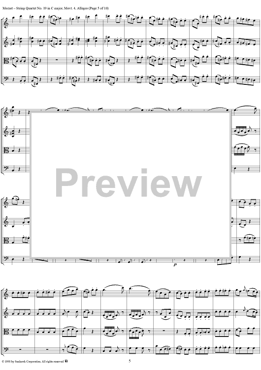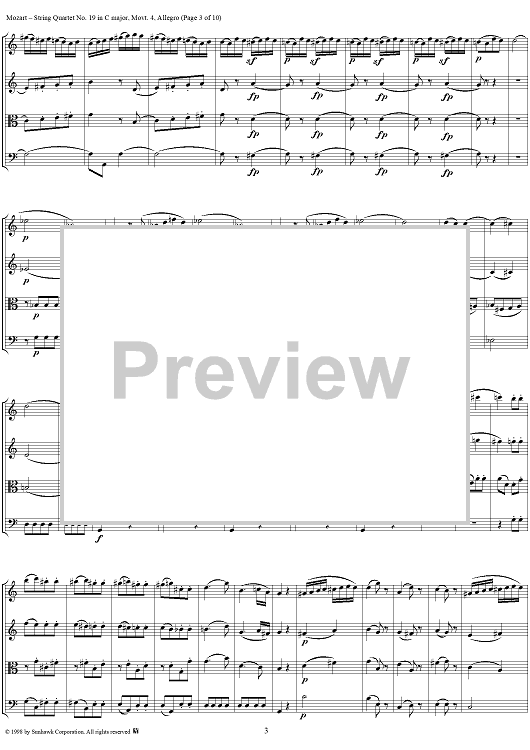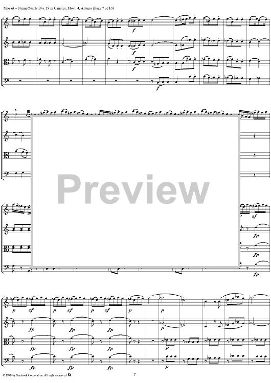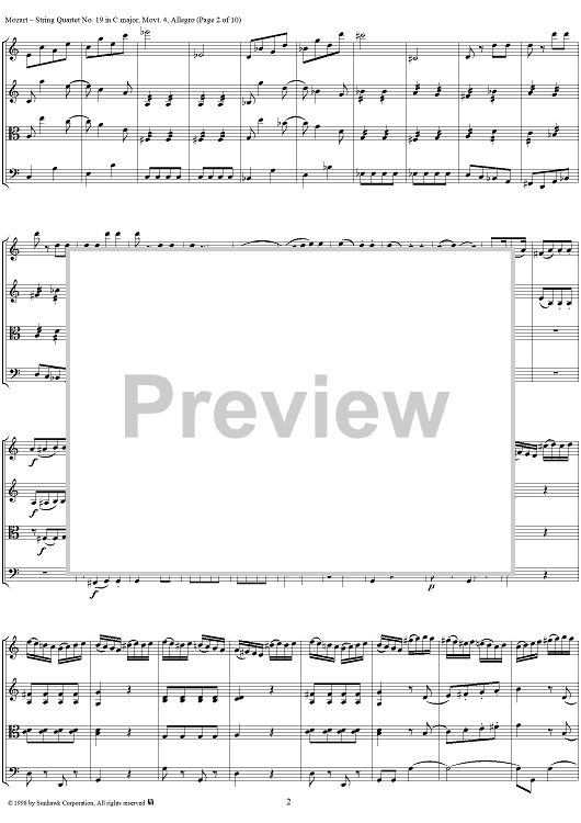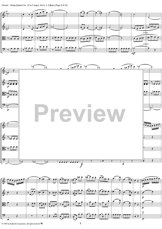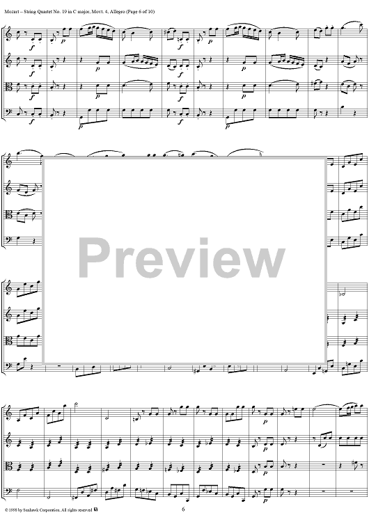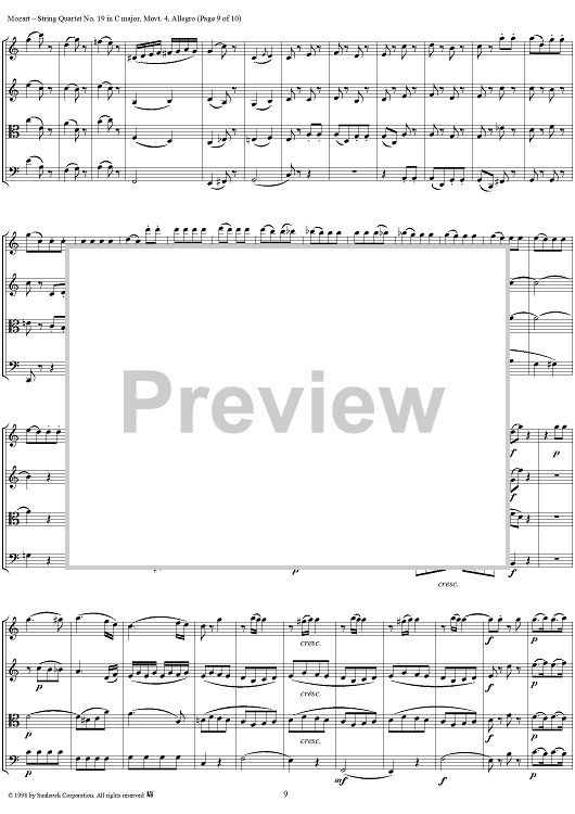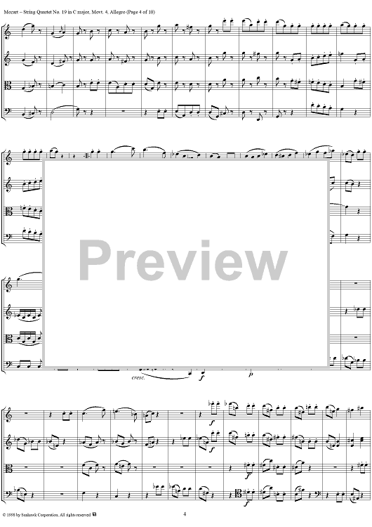 Digital Sheet Music for String Quartet No. 19, Movement 4 - Score by Wolfgang Amadeus Mozart scored for String Quartet; id:252610
