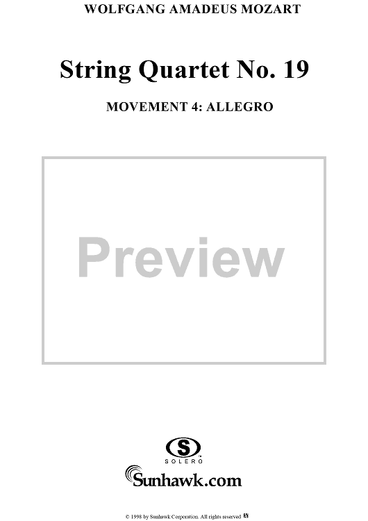 "String Quartet No. 19, Movement 4 - Score" Sheet Music by Wolfgang Amadeus Mozart