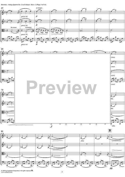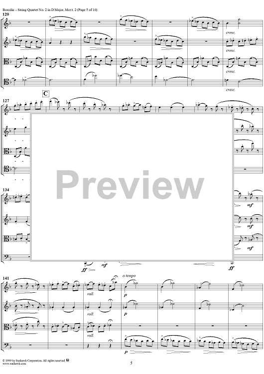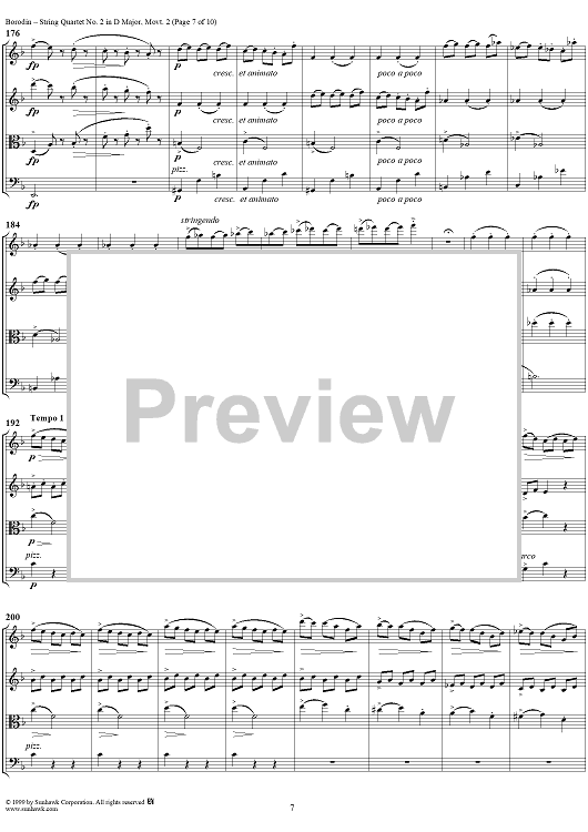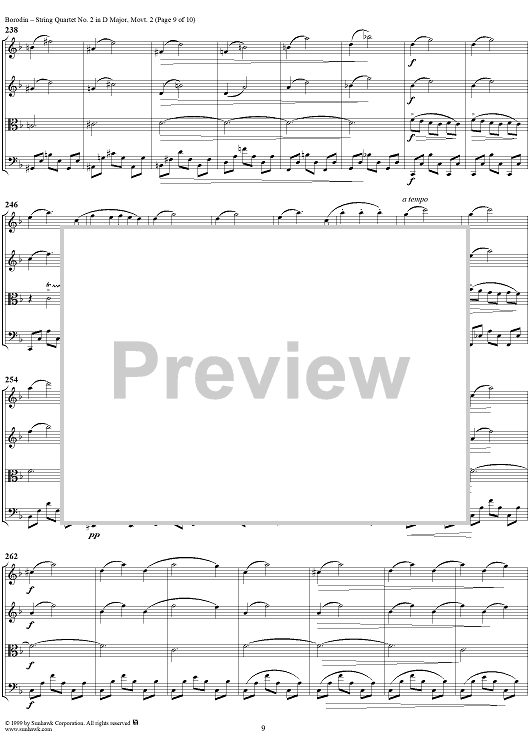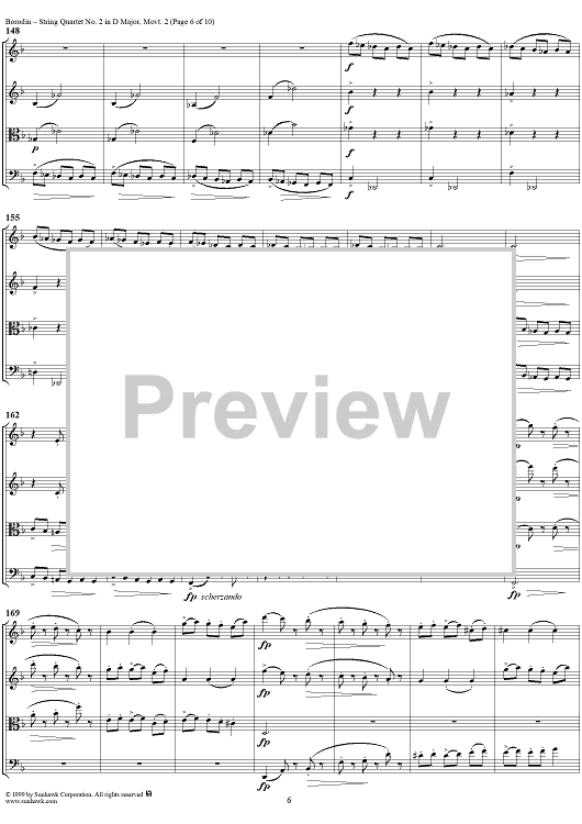 Digital Sheet Music for String Quartet No. 2 in D Major, Movement 2 - Score by Alexander Borodin scored for String Quartet; id:118526
