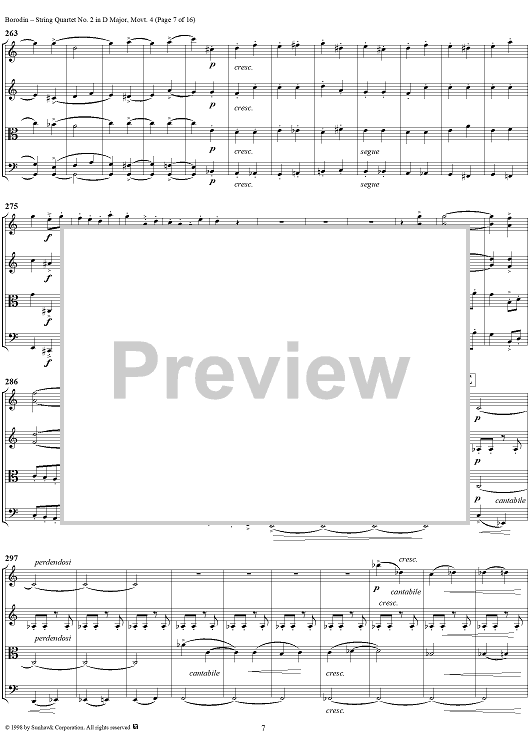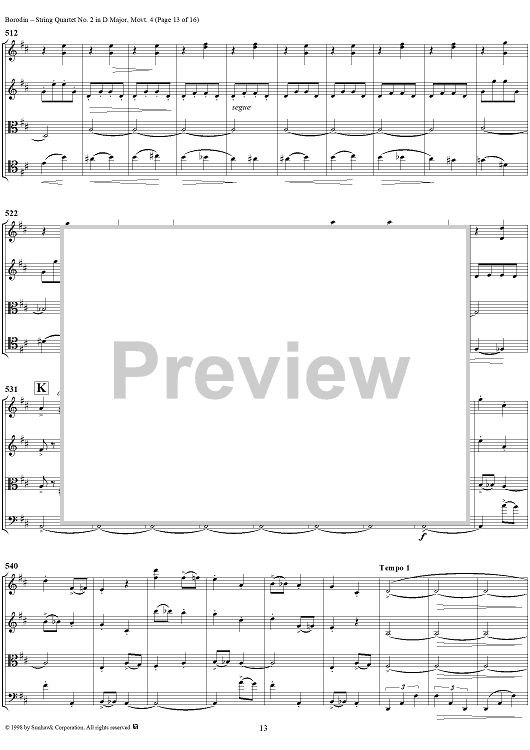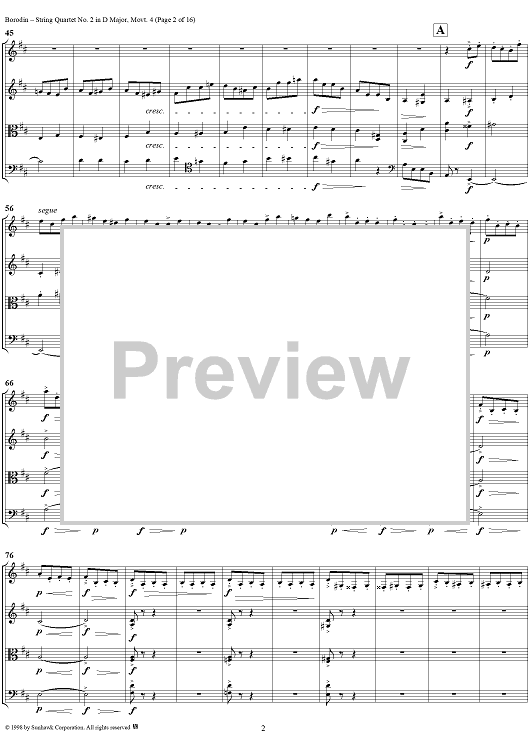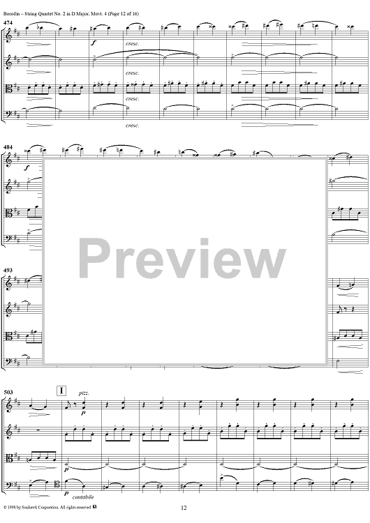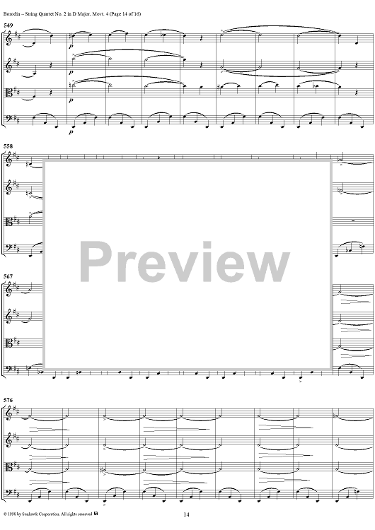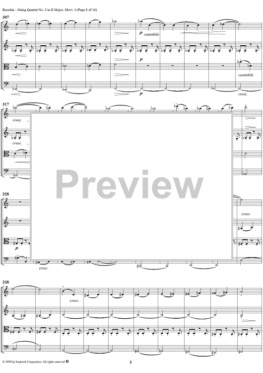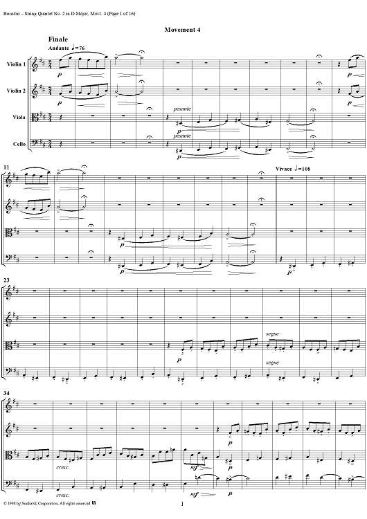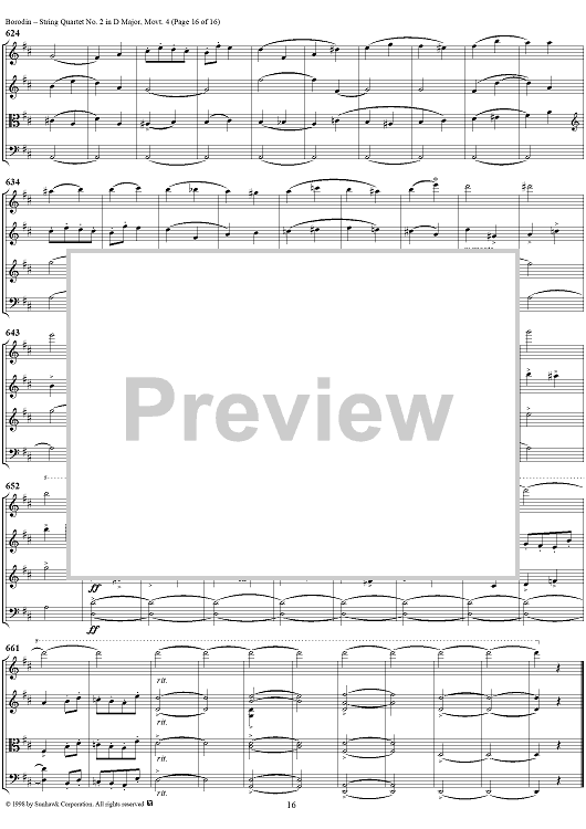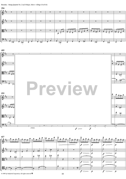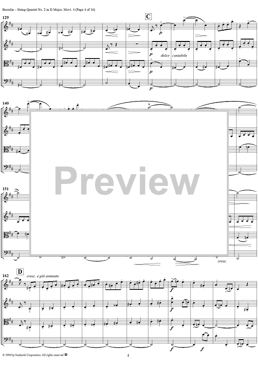 Digital Sheet Music for String Quartet No. 2 in D Major, Movement 4 - Score by Alexander Borodin scored for String Quartet; id:110926