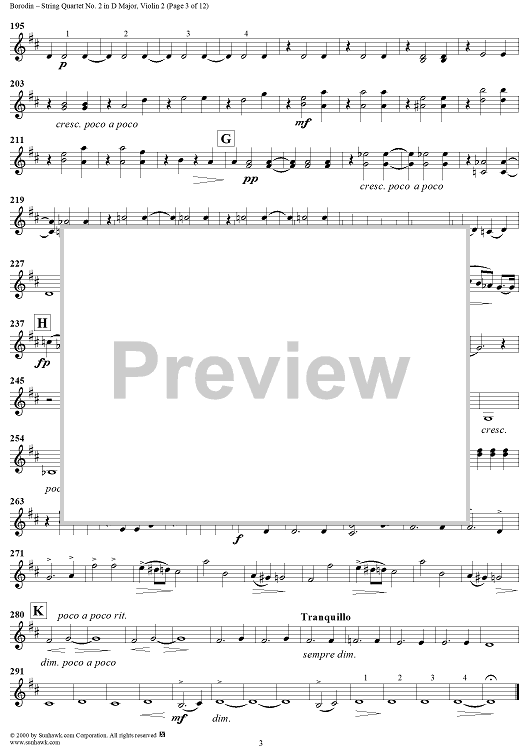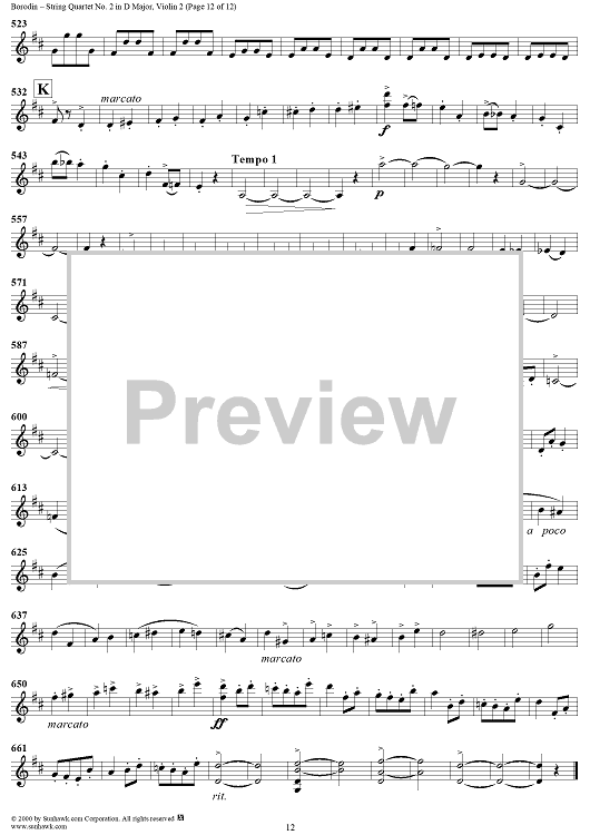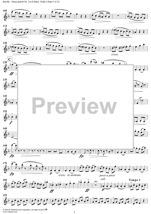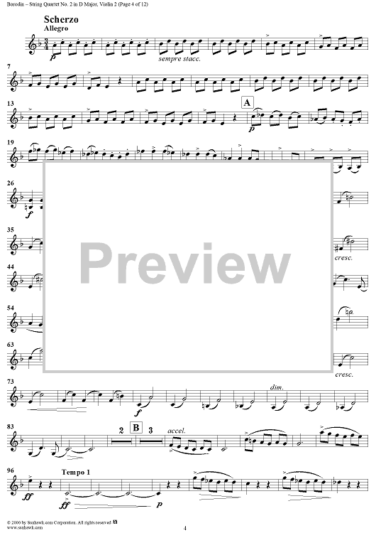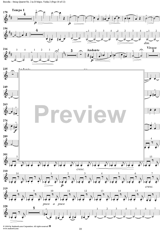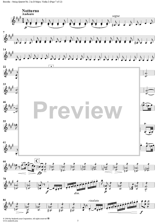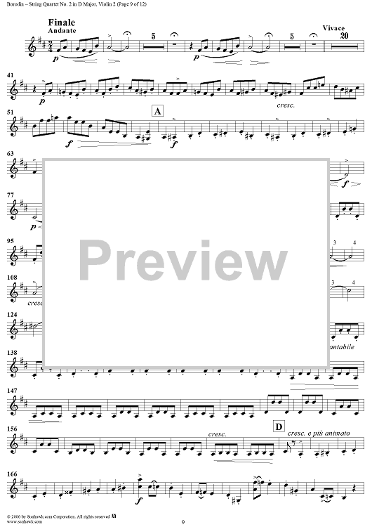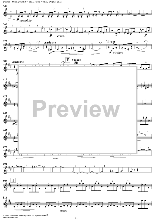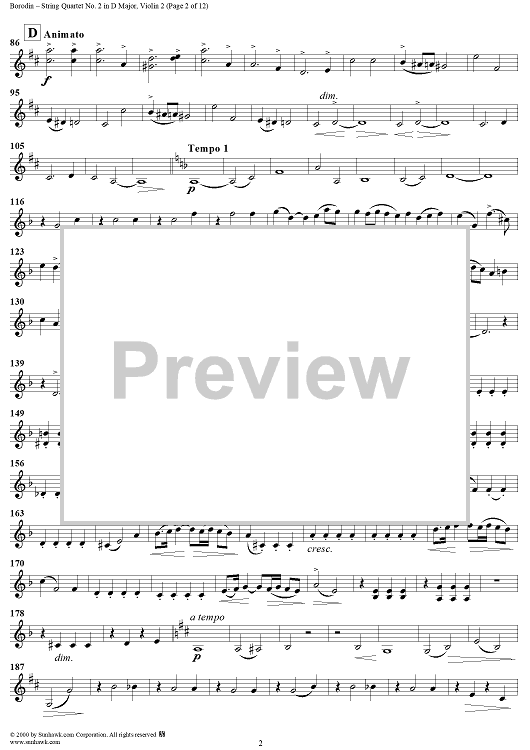 Digital Sheet Music for String Quartet No. 2 in D Major - Violin 2 by Alexander Borodin scored for String Quartet; id:235638