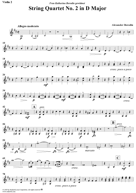 "String Quartet No. 2 in D Major - Violin 2" Sheet Music by Alexander Borodin