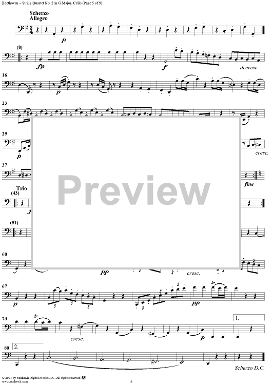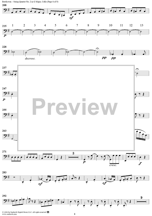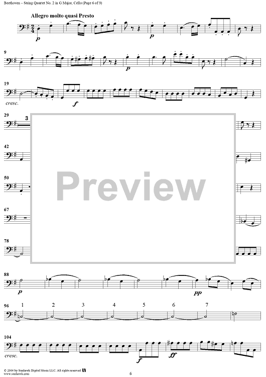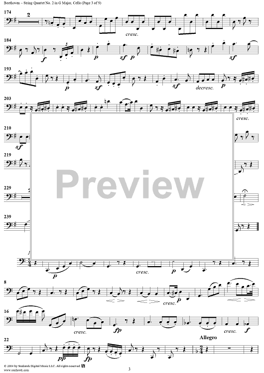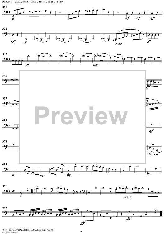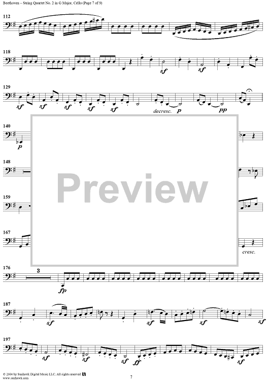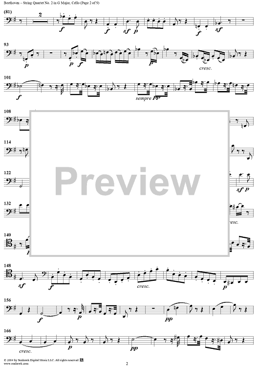 Digital Sheet Music for String Quartet No. 2 in G Major, Op. 18, No. 2 - Cello by Ludwig van Beethoven scored for String Quartet; id:118480