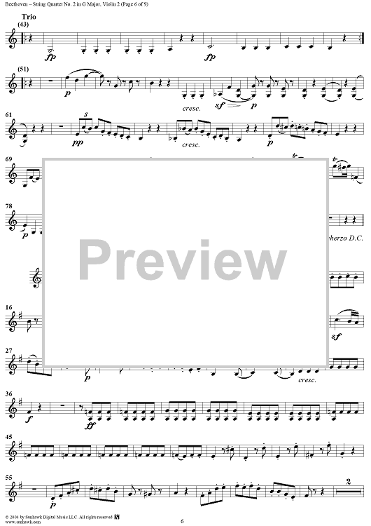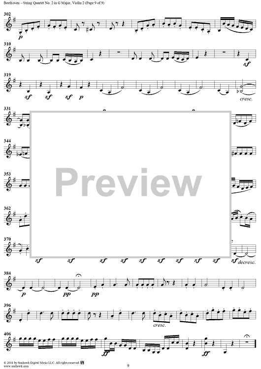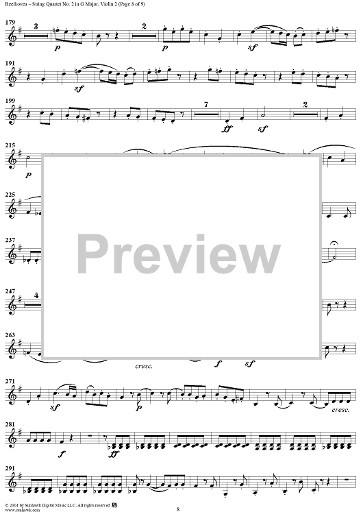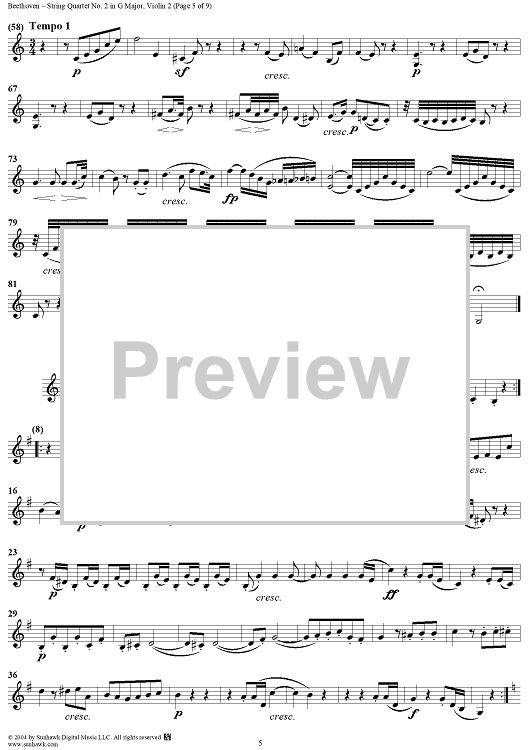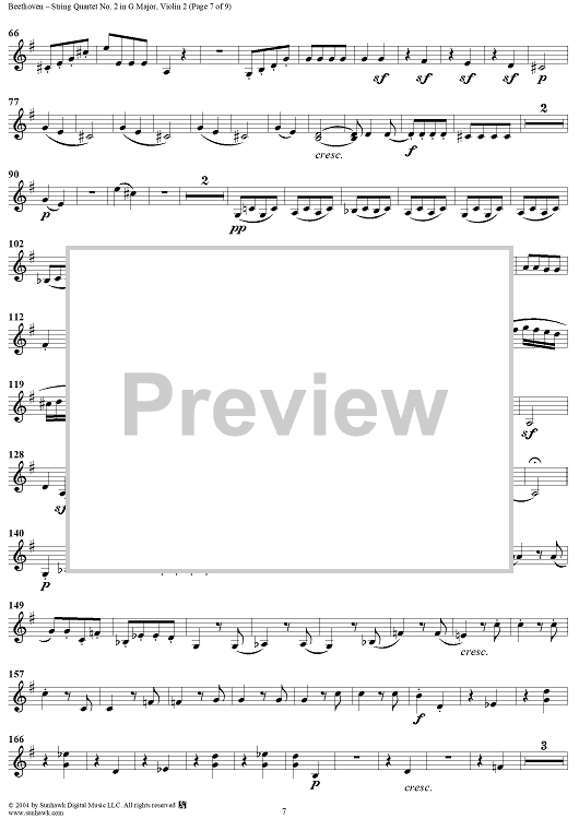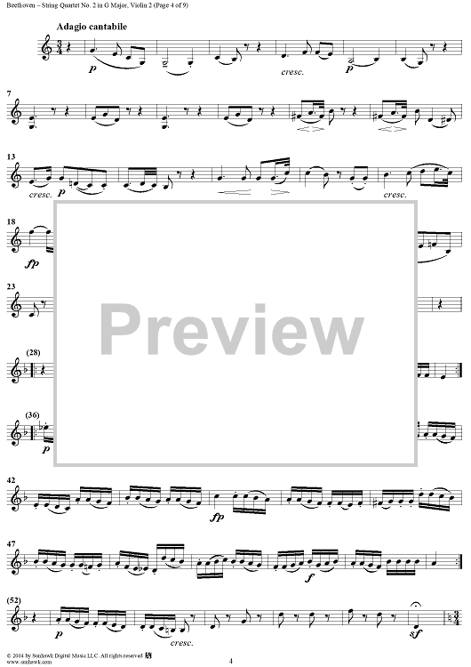 Digital Sheet Music for String Quartet No. 2 in G Major, Op. 18, No. 2 - Violin 2 by Ludwig van Beethoven scored for String Quartet; id:275527
