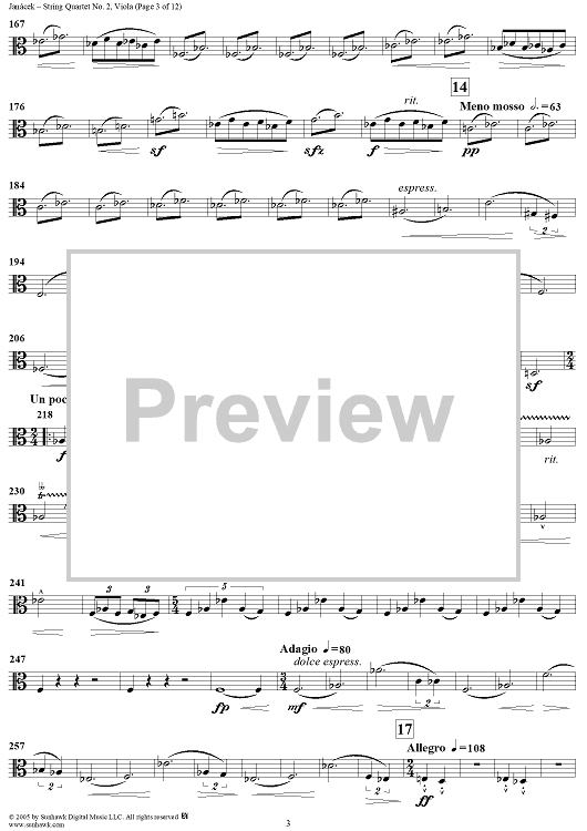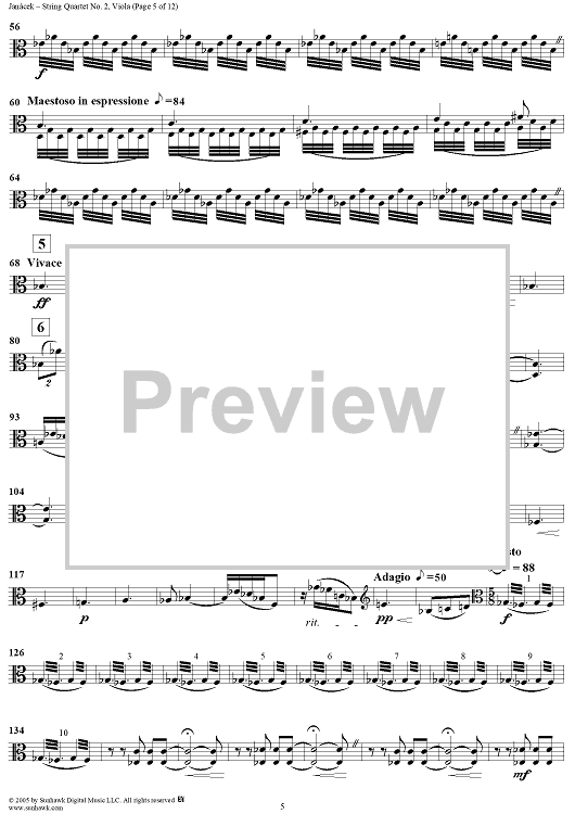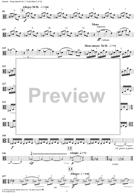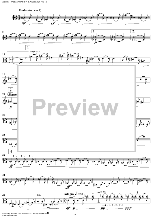 Digital Sheet Music for String Quartet No. 2: Intimate Letters - Viola by Leoš Janácek scored for String Quartet; id:311251