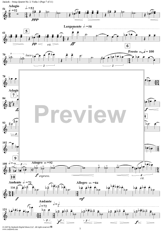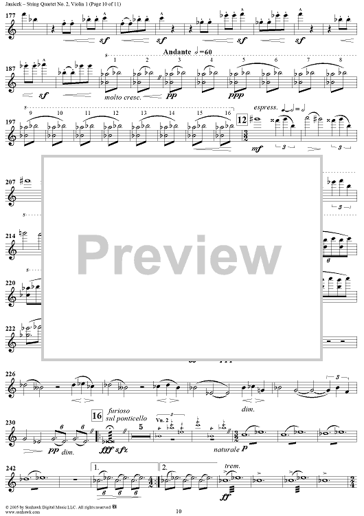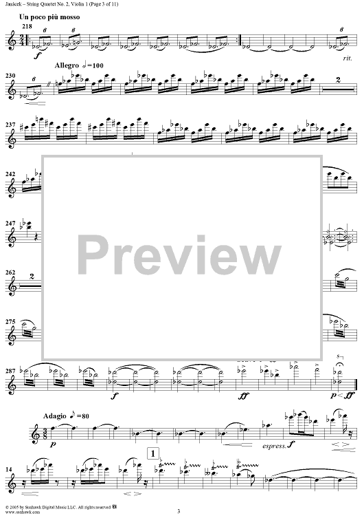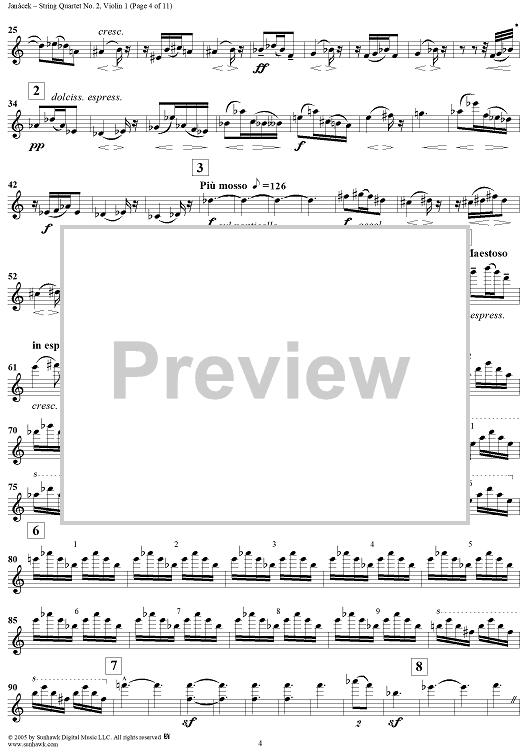 Digital Sheet Music for String Quartet No. 2: Intimate Letters - Violin 1 by Leoš Janácek scored for String Quartet; id:311249