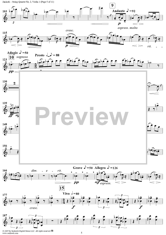 "String Quartet No. 2: Intimate Letters - Violin 1" Sheet Music by Leoš Janácek