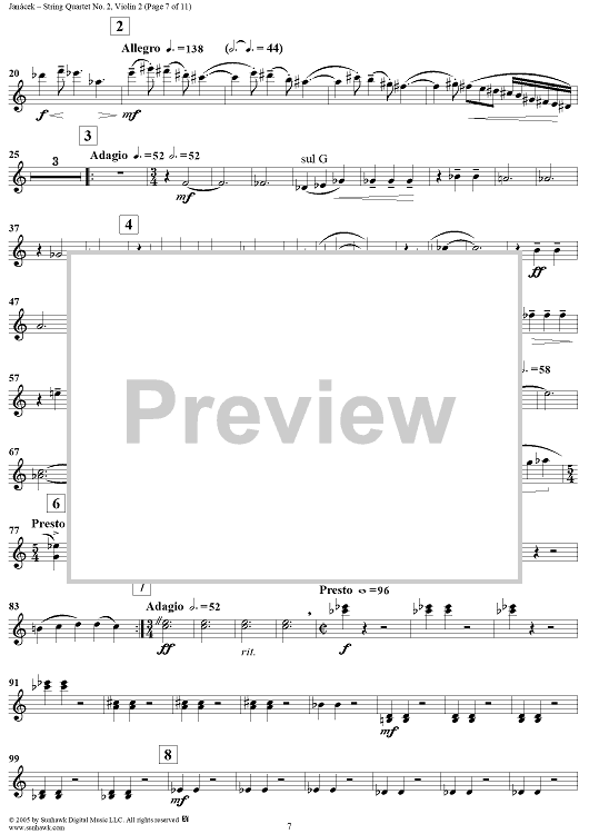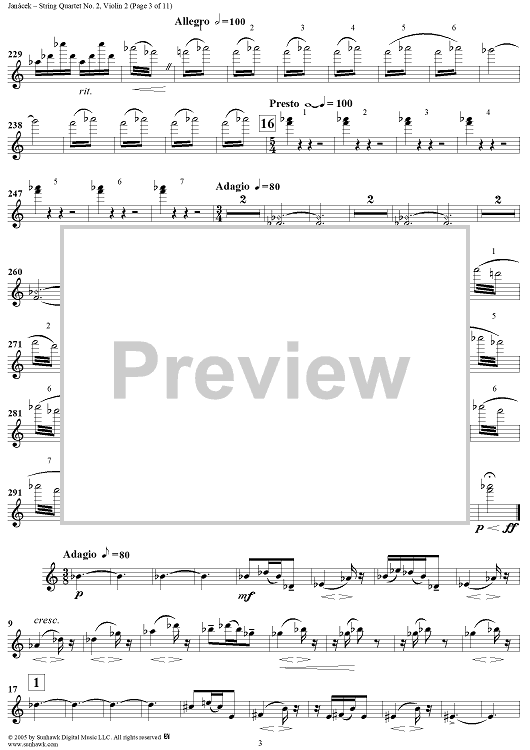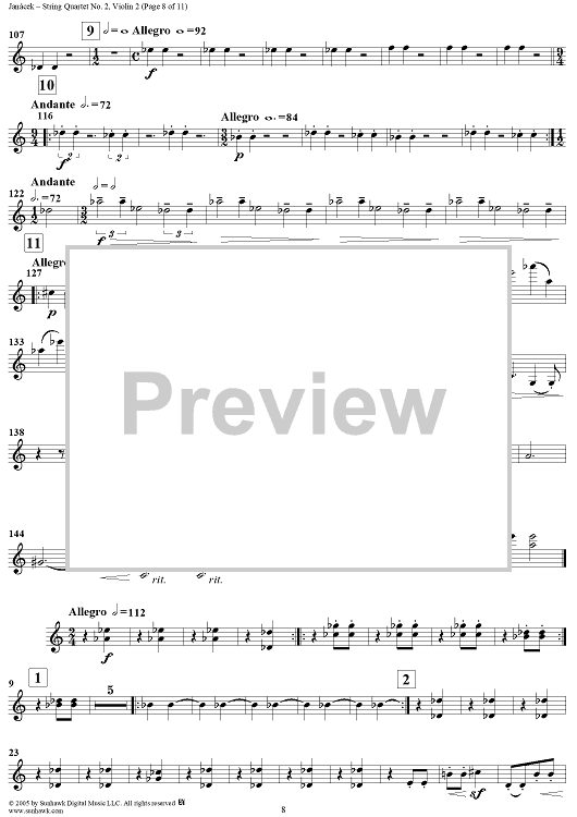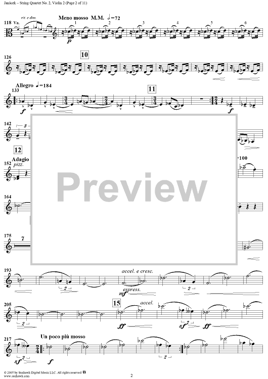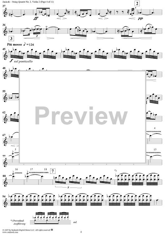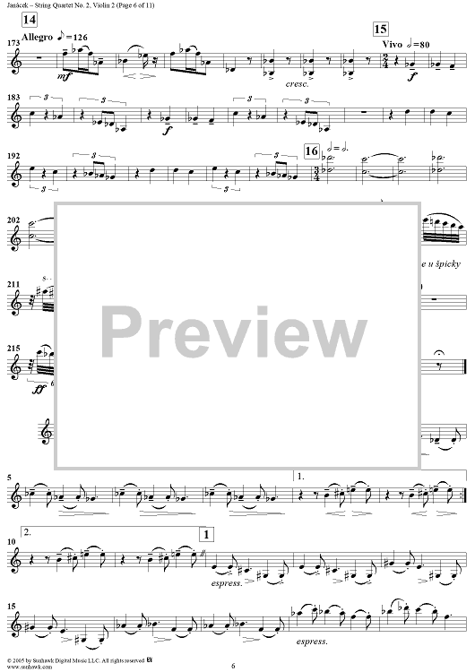 Digital Sheet Music for String Quartet No. 2: Intimate Letters - Violin 2 by Leoš Janácek scored for String Quartet; id:311250