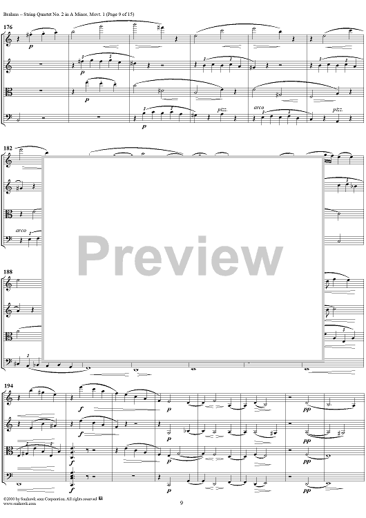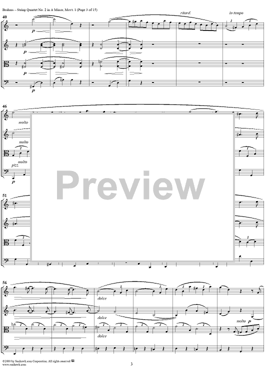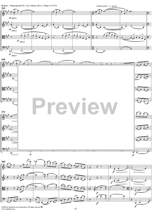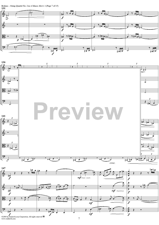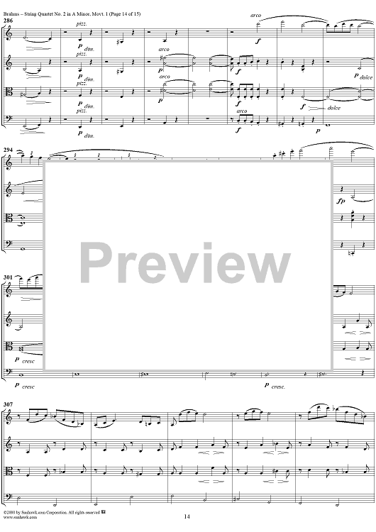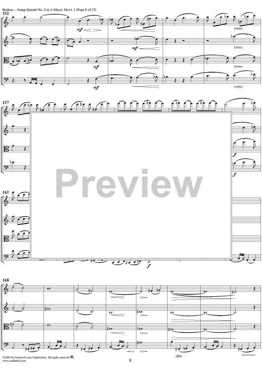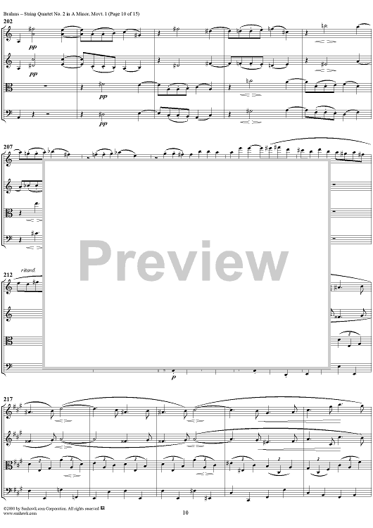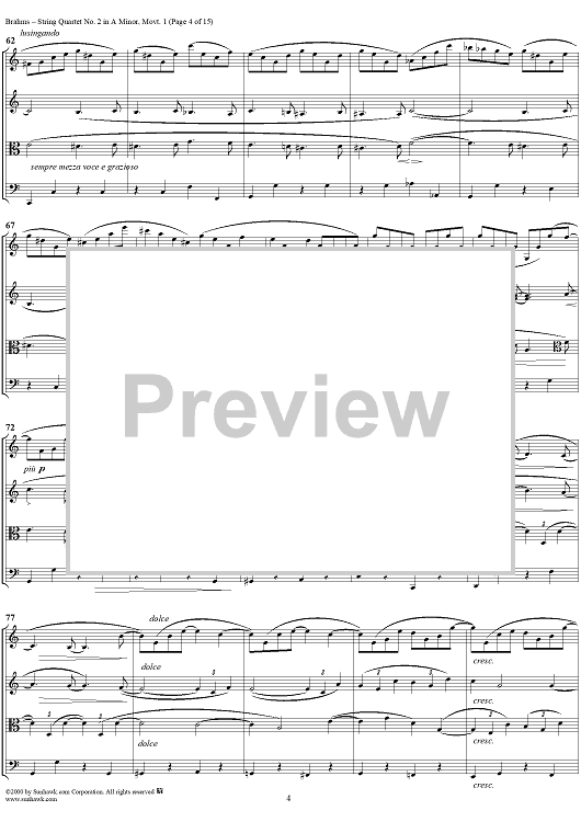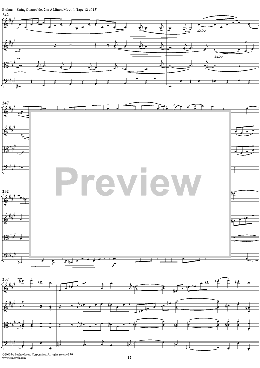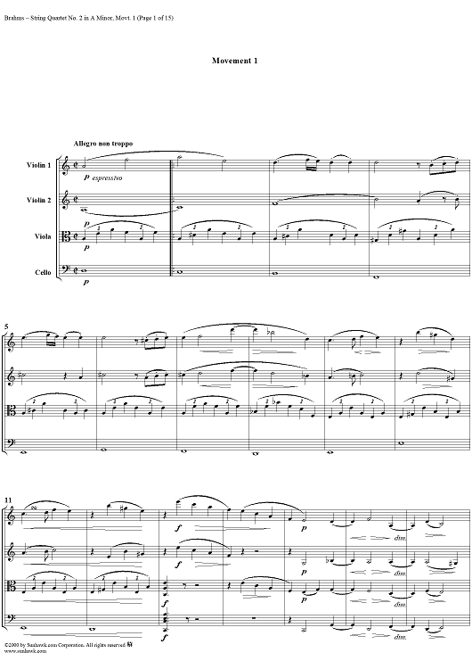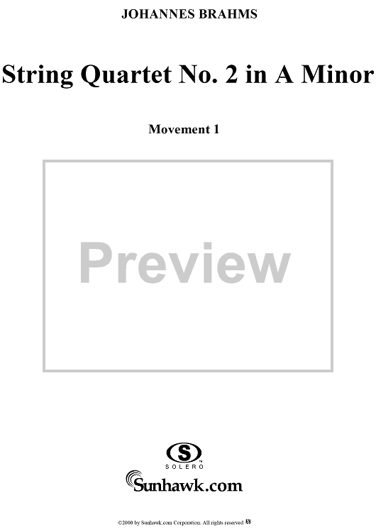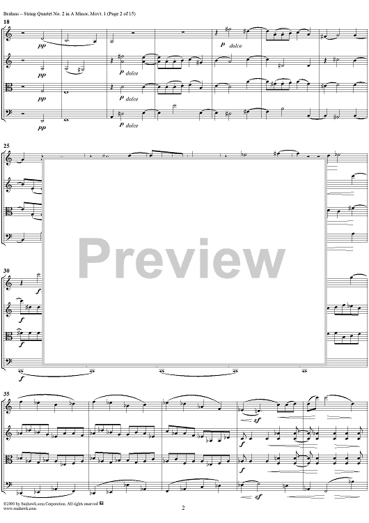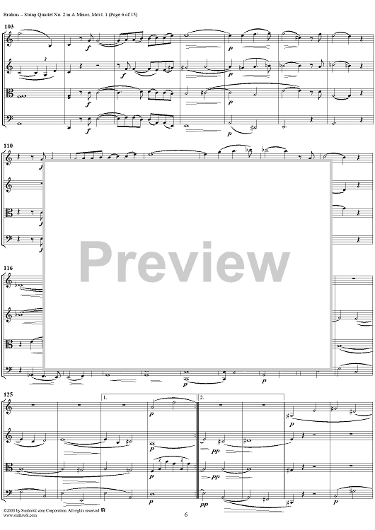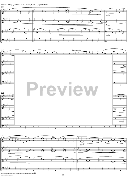 Digital Sheet Music for String Quartet No. 2, Movement 1 - Score by Johannes Brahms scored for String Quartet; id:241351