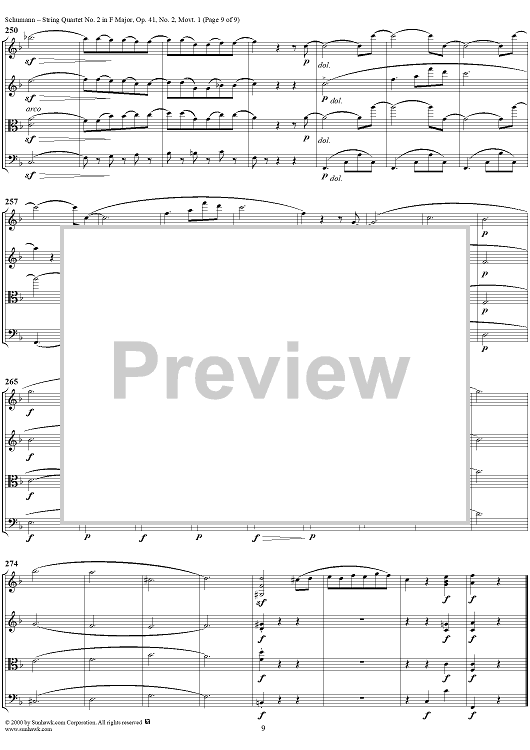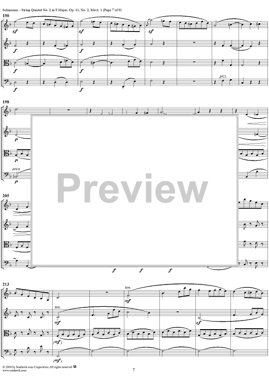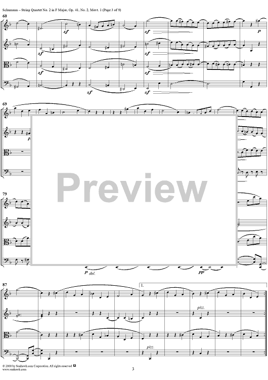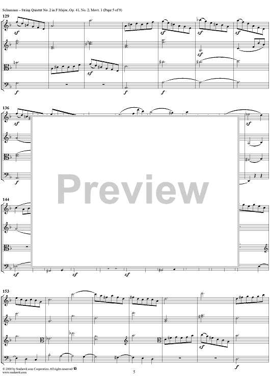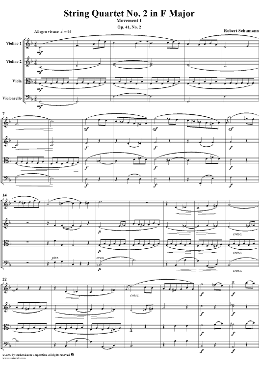 Digital Sheet Music for String Quartet No. 2, Movement 1 - Score by Robert Schumann scored for String Quartet; id:241398