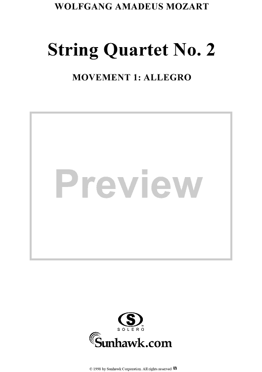 "String Quartet No. 2, Movement 1 - Score" Sheet Music by Wolfgang Amadeus Mozart