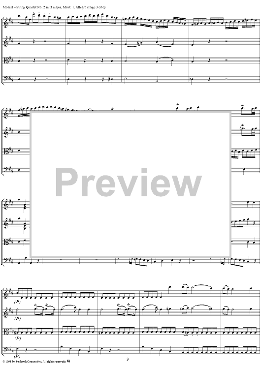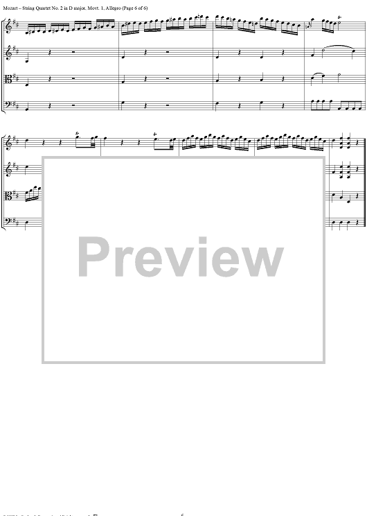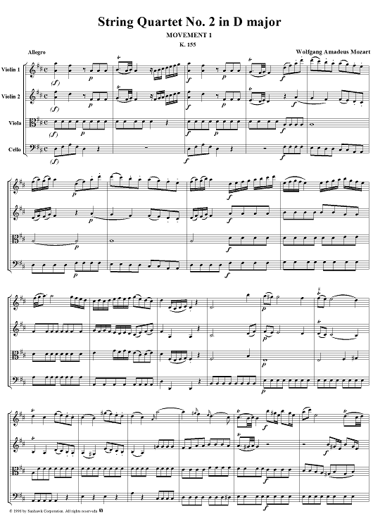 Digital Sheet Music for String Quartet No. 2, Movement 1 - Score by Wolfgang Amadeus Mozart scored for String Quartet; id:253303