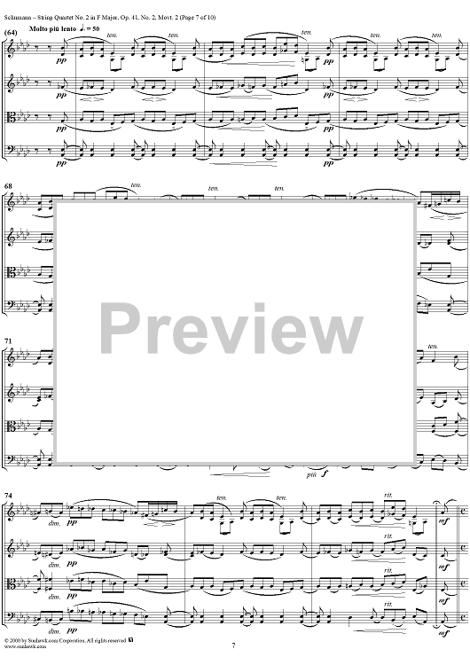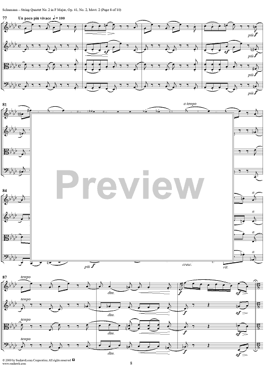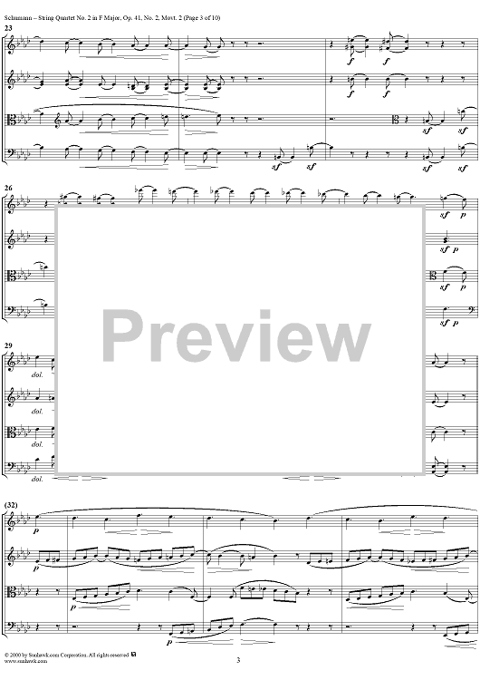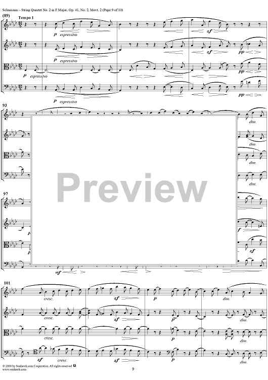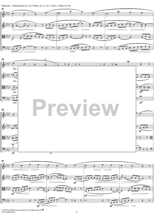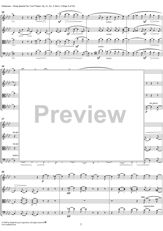 Digital Sheet Music for String Quartet No. 2, Movement 2 - Score by Robert Schumann scored for String Quartet; id:241399