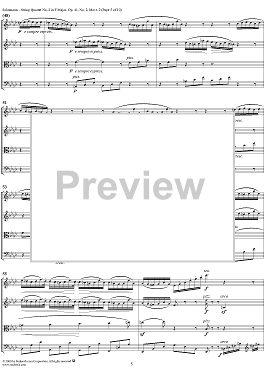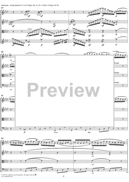 "String Quartet No. 2, Movement 2 - Score" Sheet Music by Robert Schumann