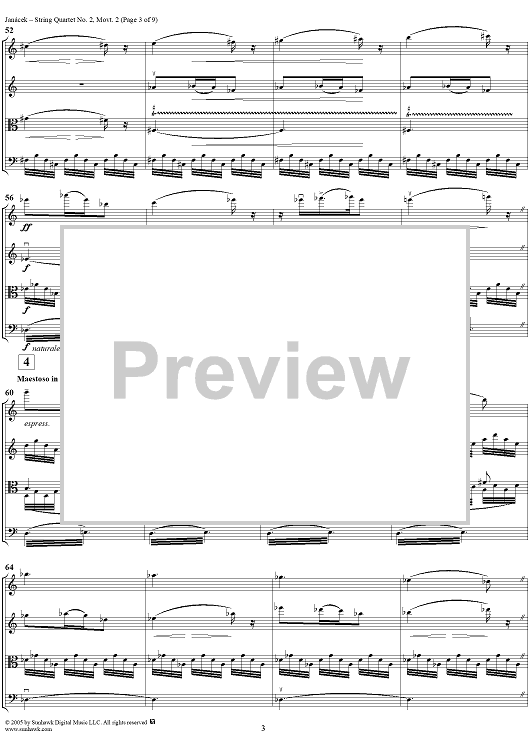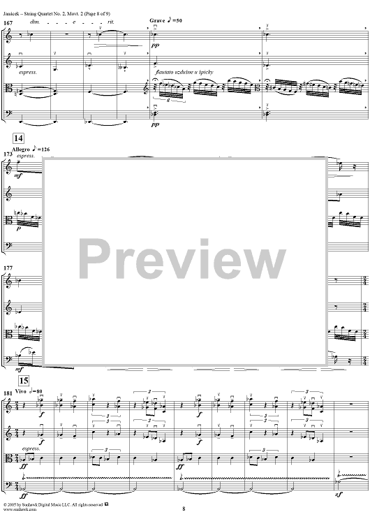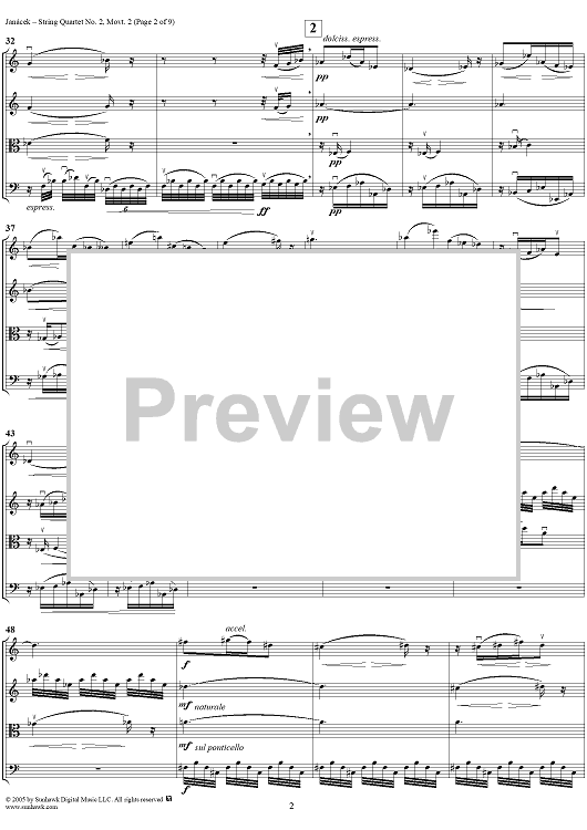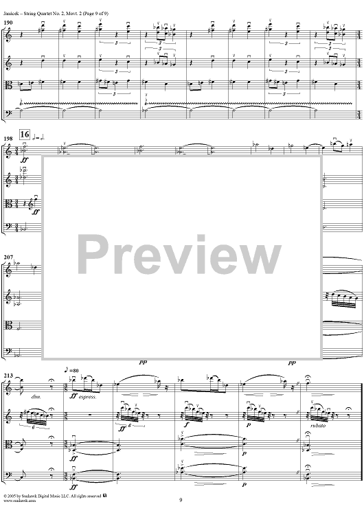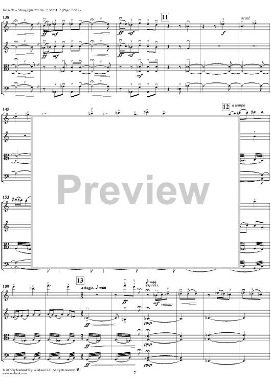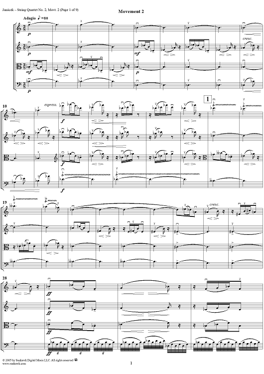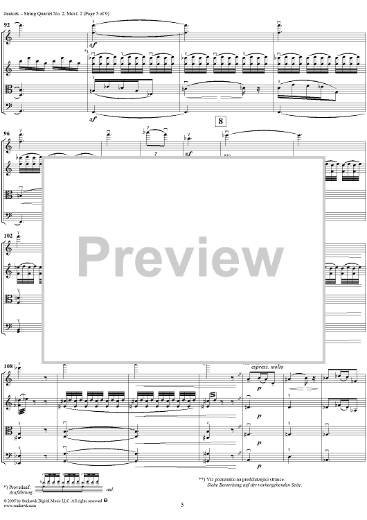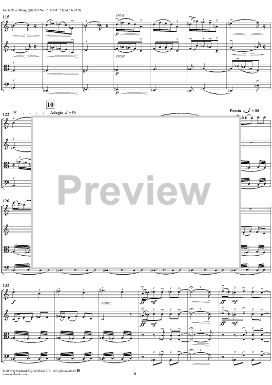 Digital Sheet Music for String Quartet No. 2, Movement 2 - Score by Leoš Janácek scored for String Quartet; id:311245