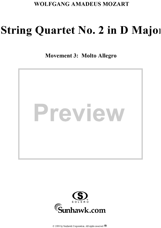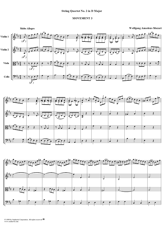 Digital Sheet Music for String Quartet No. 2, Movement 3 - Score by Wolfgang Amadeus Mozart scored for String Quartet; id:118546