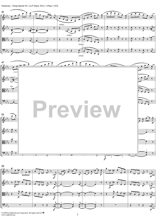 "String Quartet No. 2, Movement 3 - Score" Sheet Music by Robert Schumann