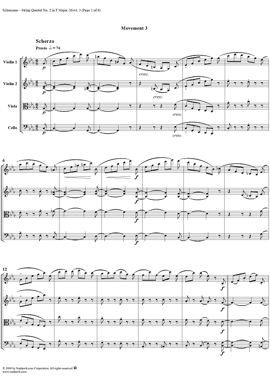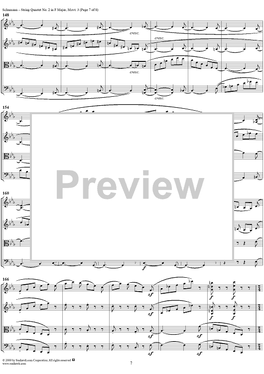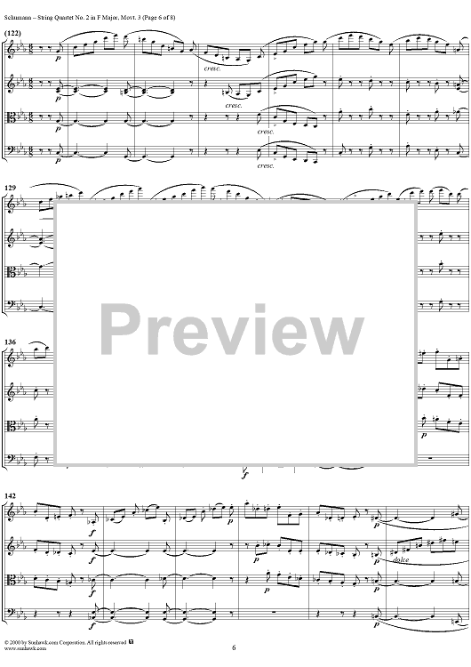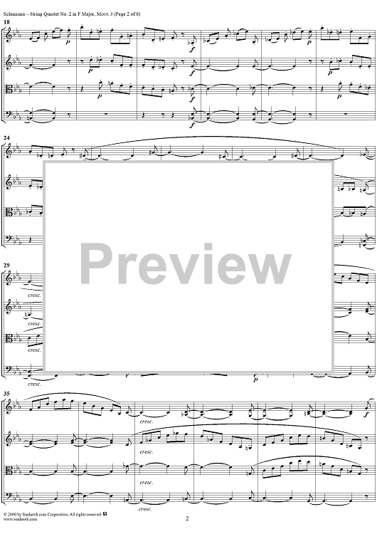 Digital Sheet Music for String Quartet No. 2, Movement 3 - Score by Robert Schumann scored for String Quartet; id:241574