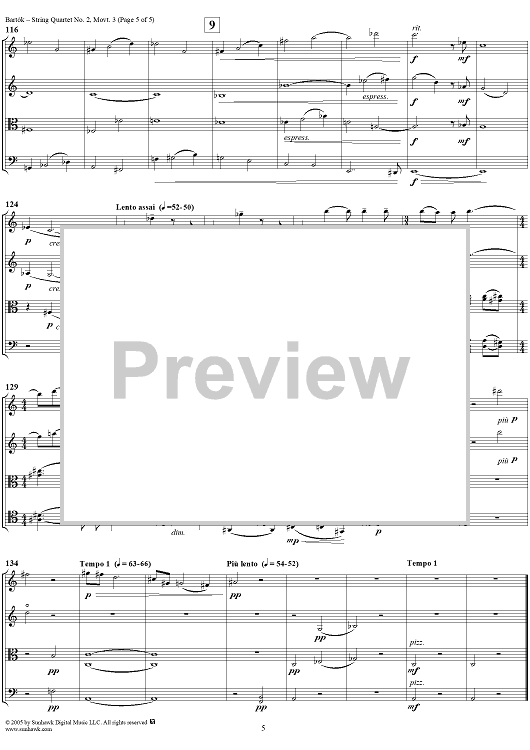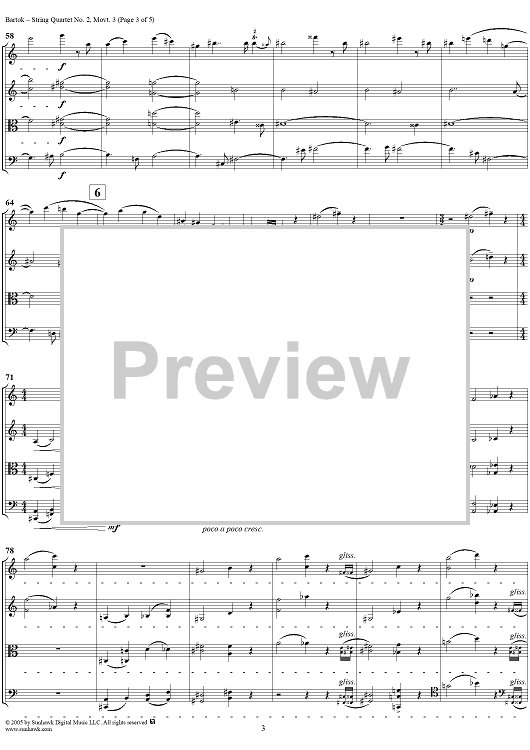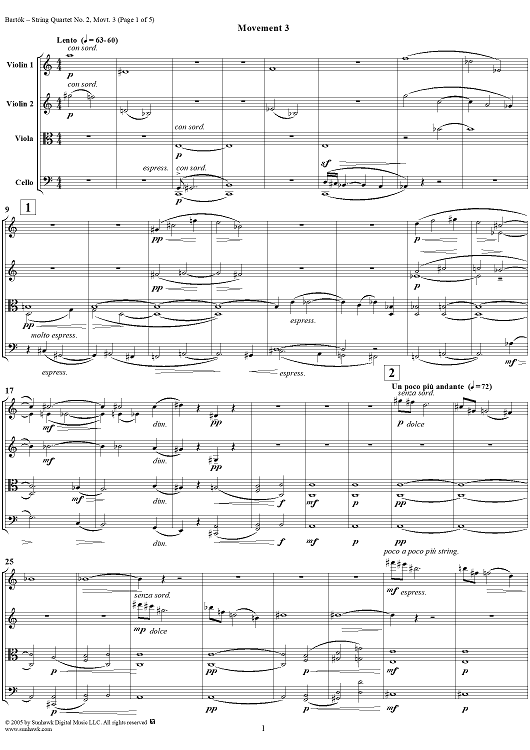 Digital Sheet Music for String Quartet No. 2, Movement 3 - Score by Bela Bartok scored for String Quartet; id:309806