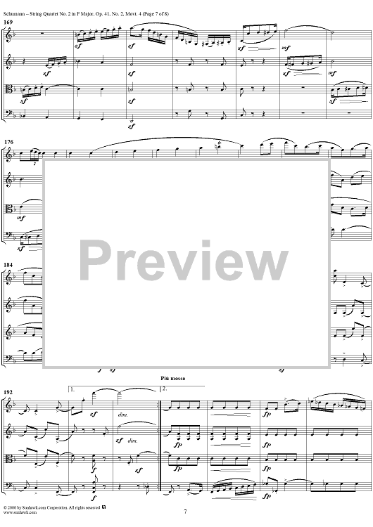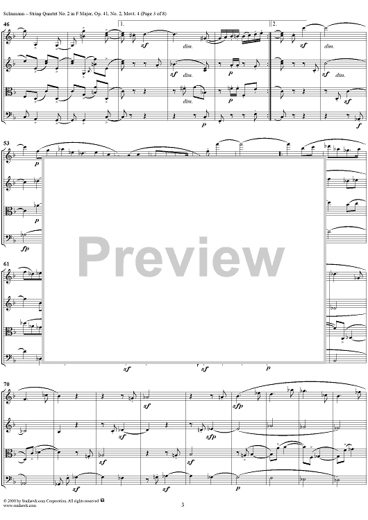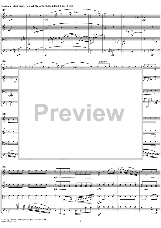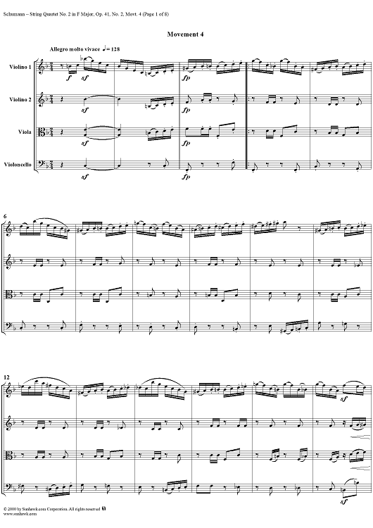 Digital Sheet Music for String Quartet No. 2, Movement 4 - Score by Robert Schumann scored for String Quartet; id:241400
