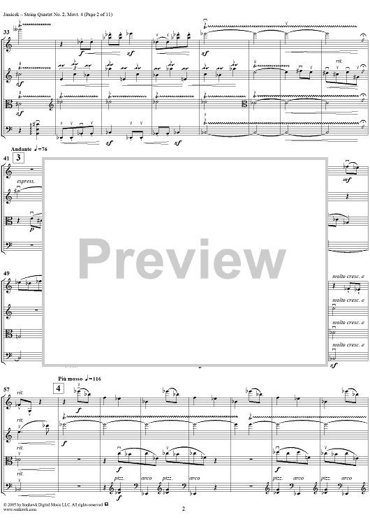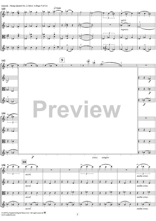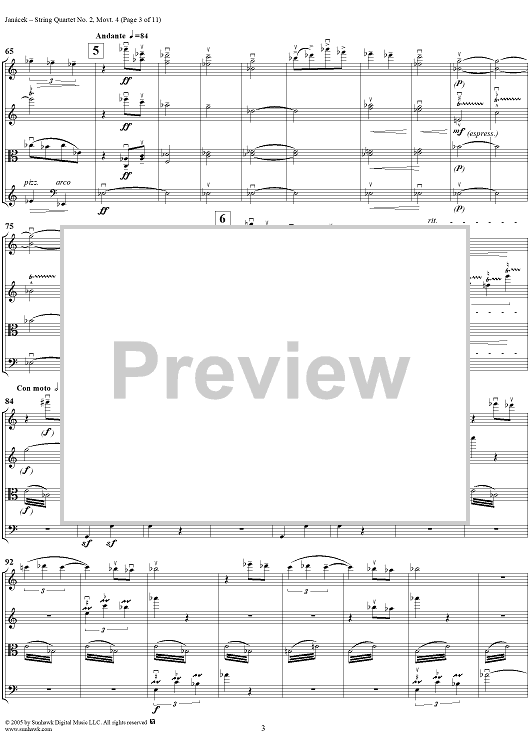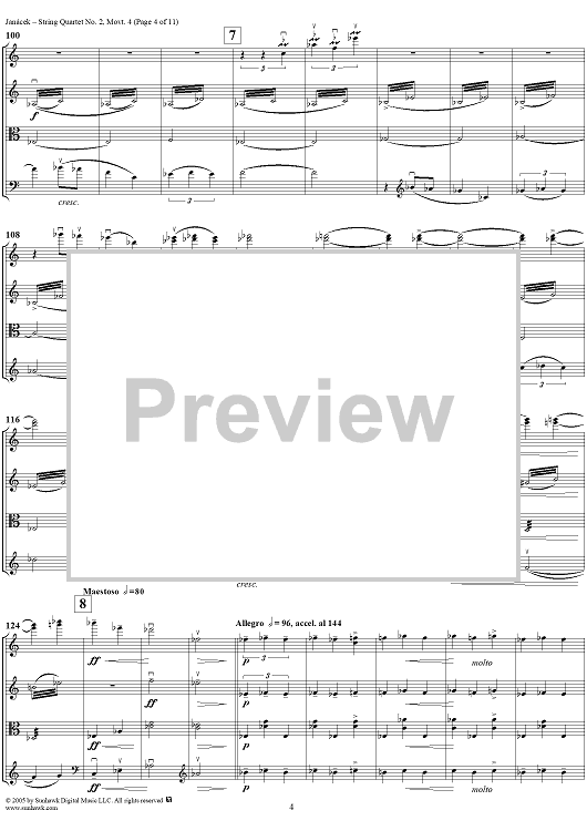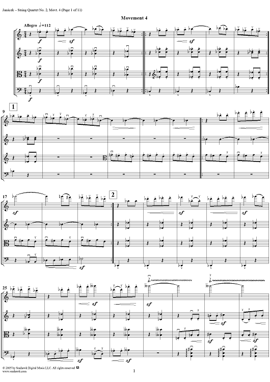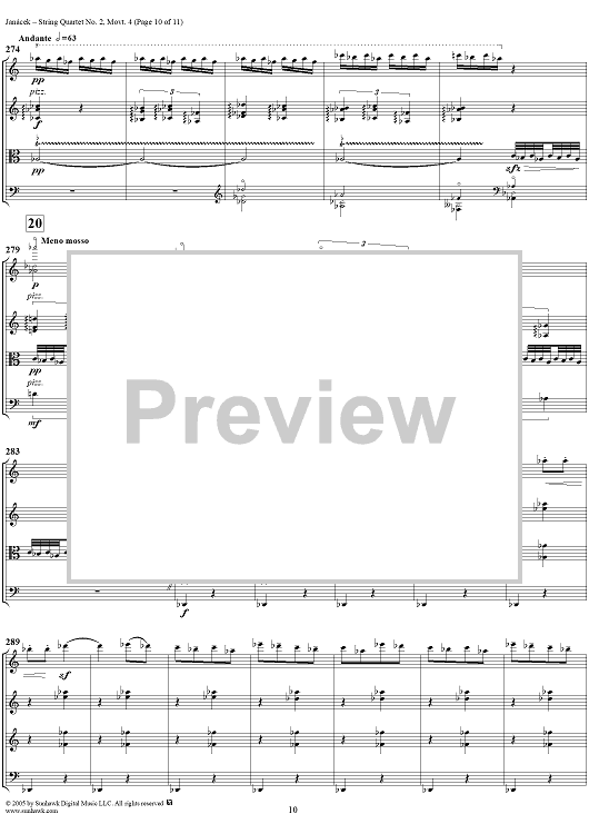 Digital Sheet Music for String Quartet No. 2, Movement 4 - Score by Leoš Janácek scored for String Quartet; id:311247