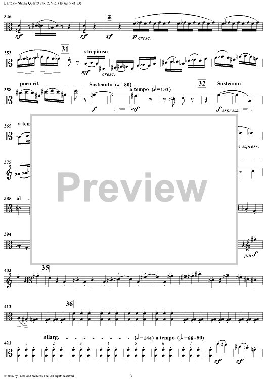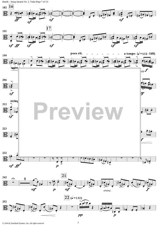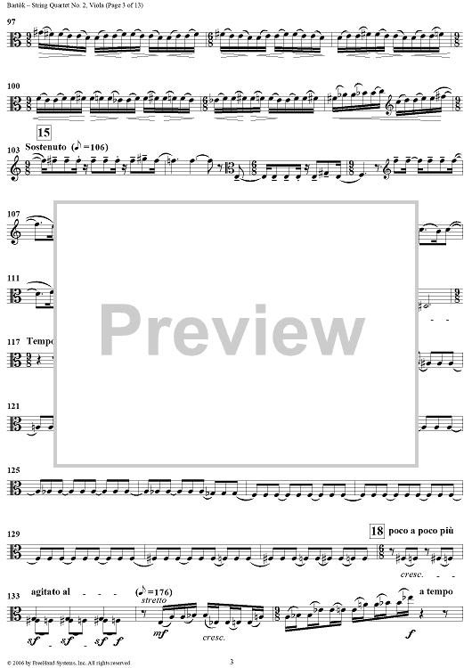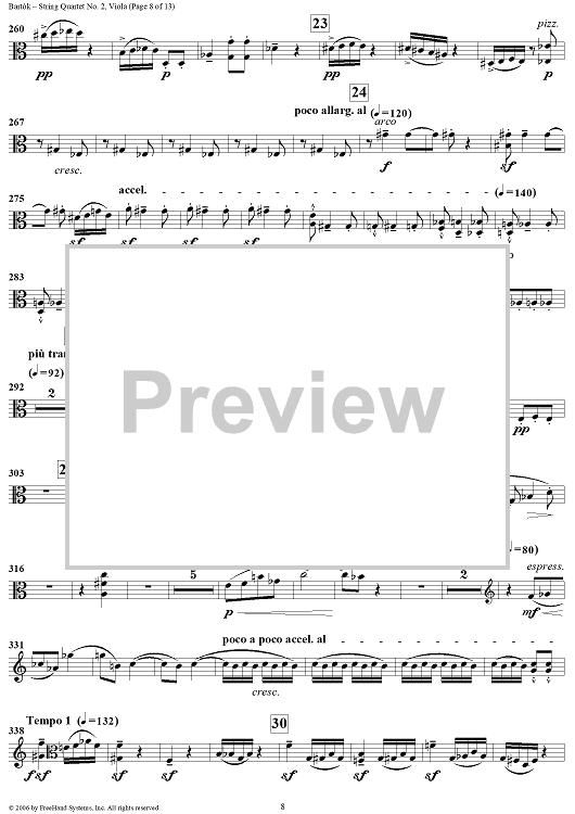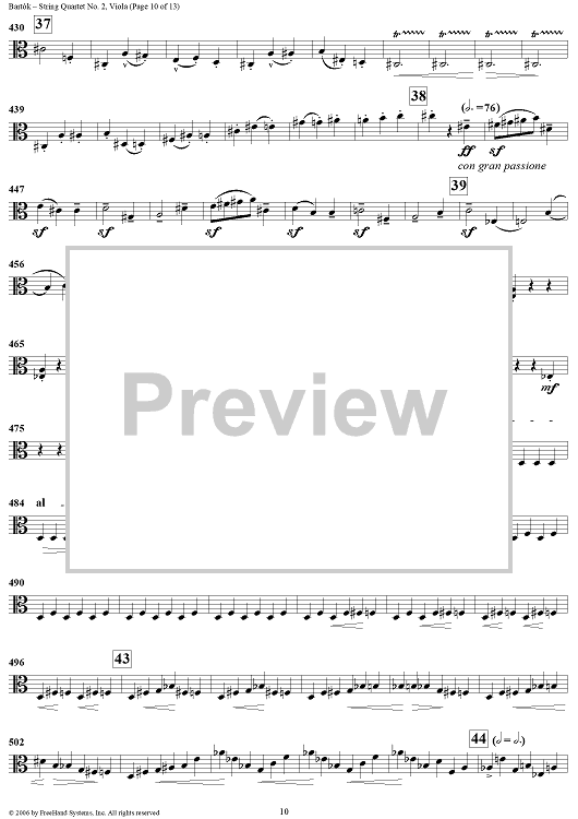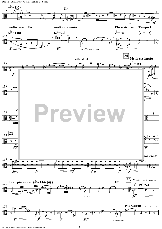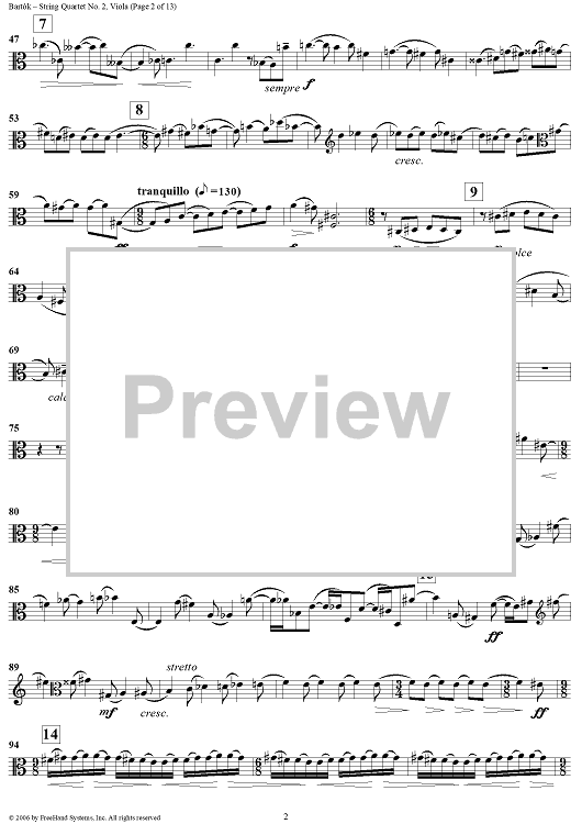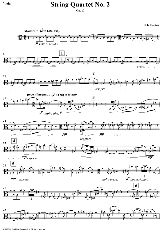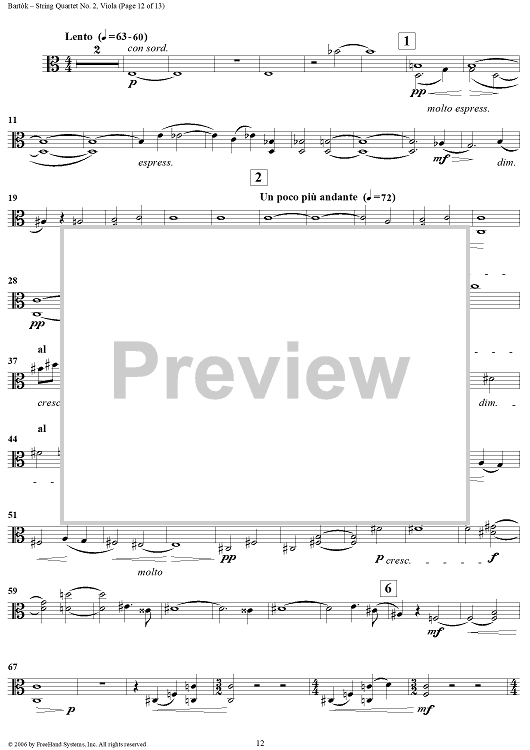 Digital Sheet Music for String Quartet No. 2, Op. 17 - Viola by Bela Bartok scored for String Quartet; id:309810