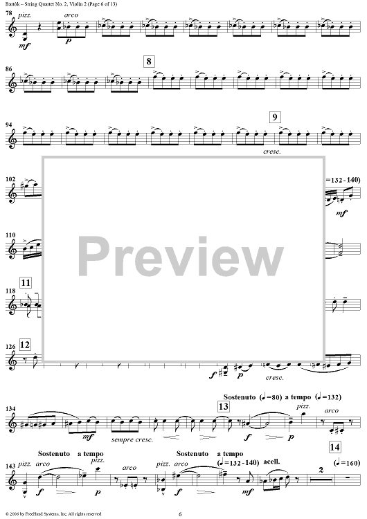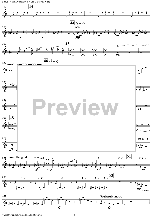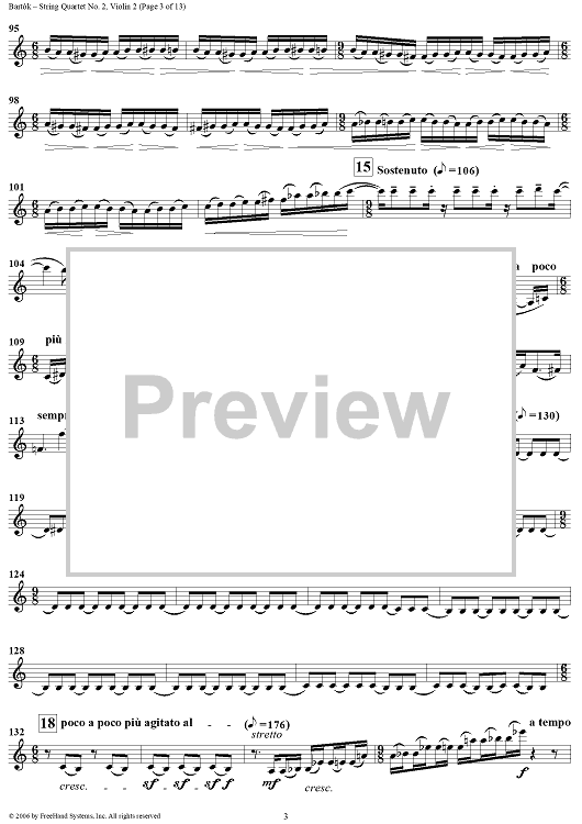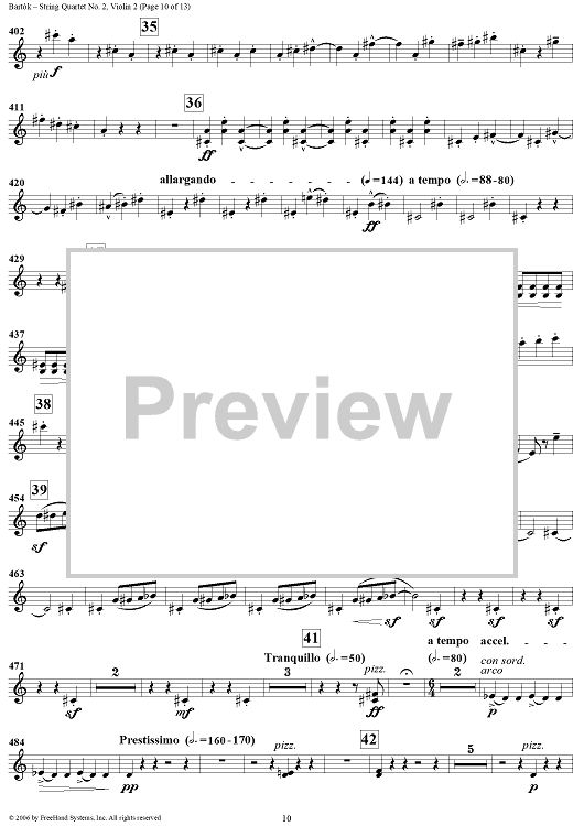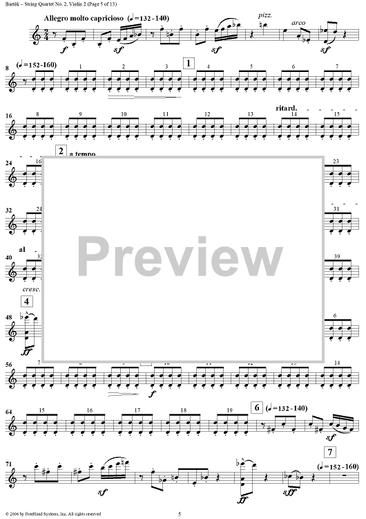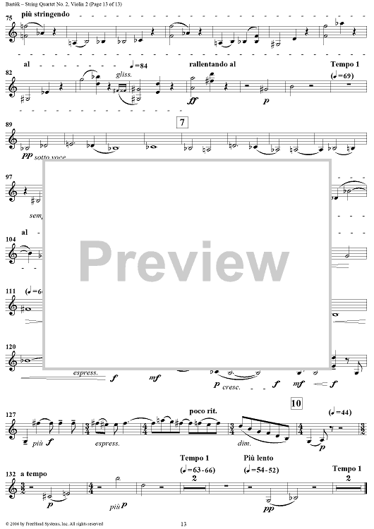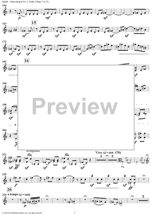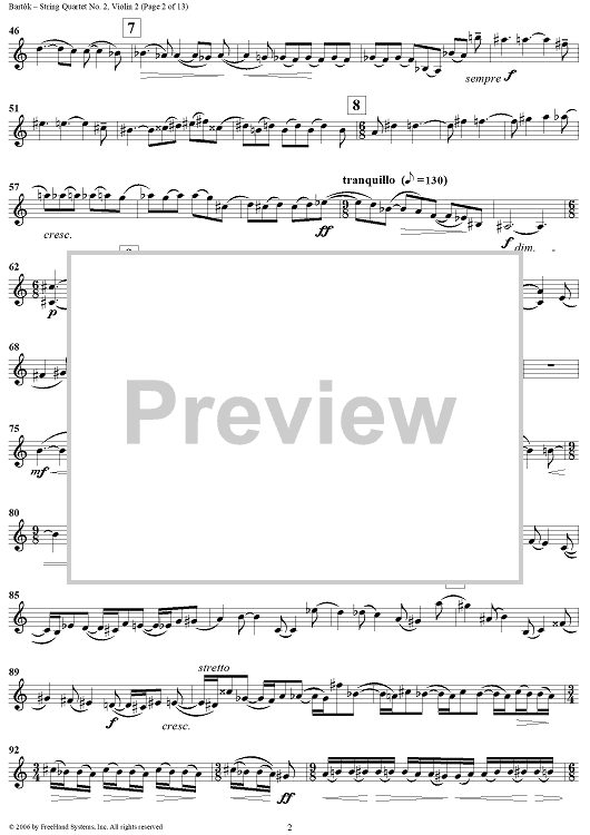 Digital Sheet Music for String Quartet No. 2, Op. 17 - Violin 2 by Bela Bartok scored for String Quartet; id:309809