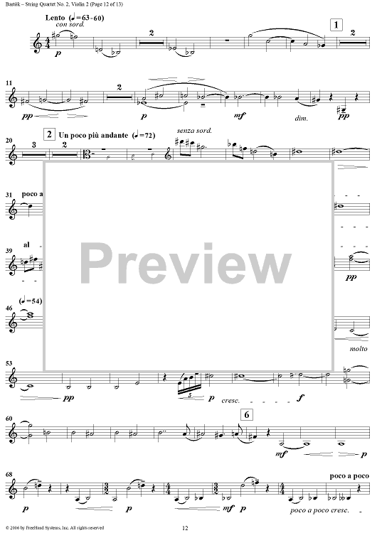 "String Quartet No. 2, Op. 17 - Violin 2" Sheet Music by Bela Bartok