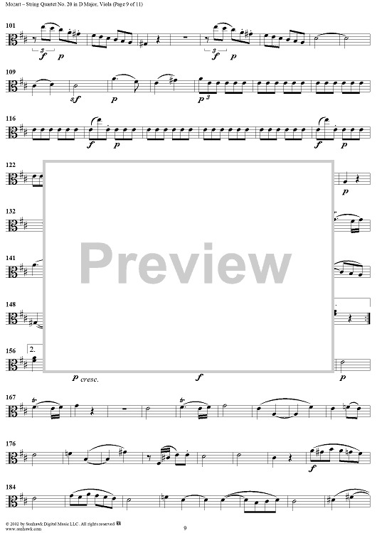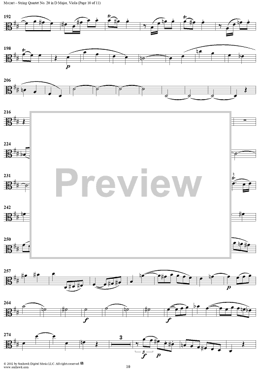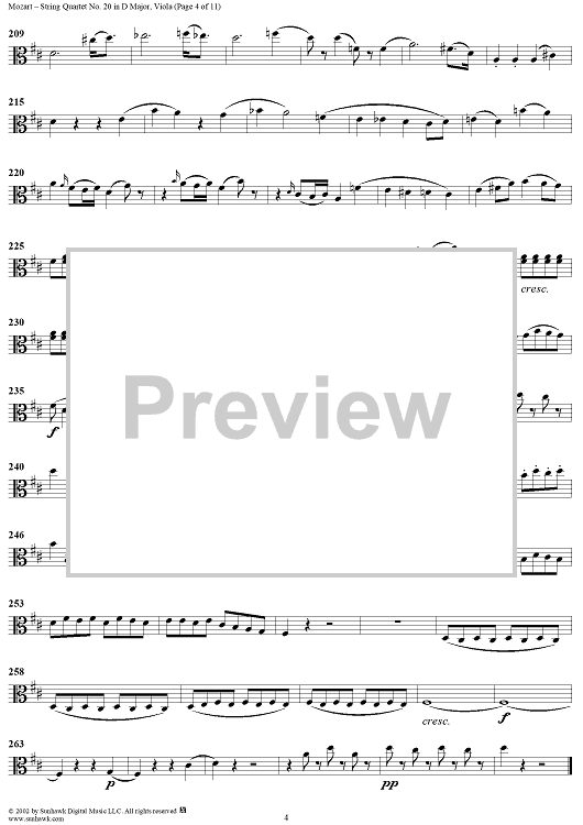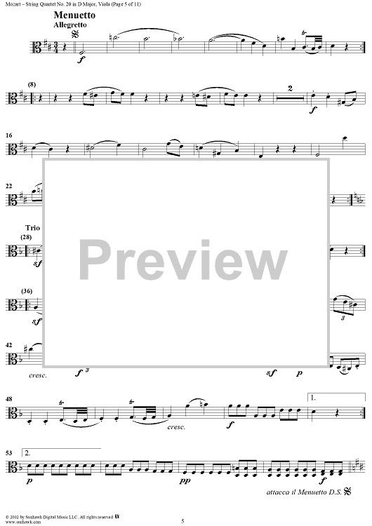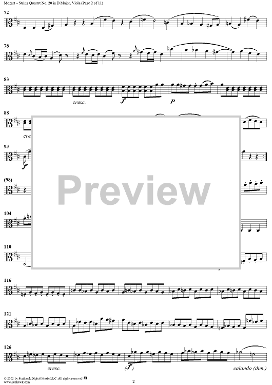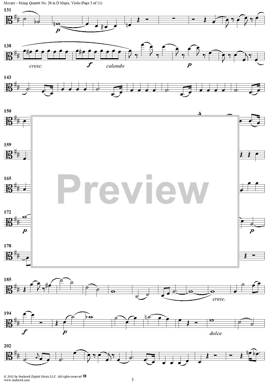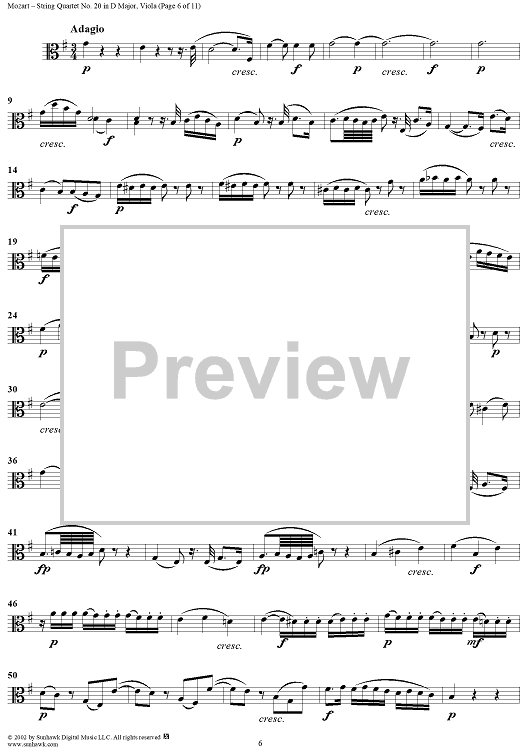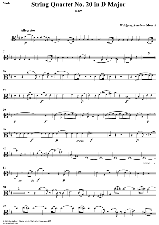 Digital Sheet Music for String Quartet No. 20 in D Major, K499 - Viola by Wolfgang Amadeus Mozart scored for String Quartet; id:252627