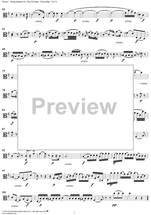"String Quartet No. 20 in D Major, K499 - Viola" Sheet Music by Wolfgang Amadeus Mozart