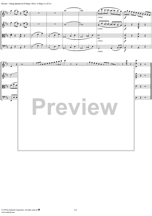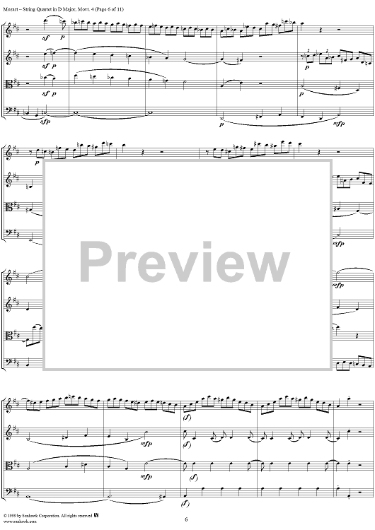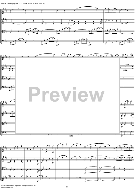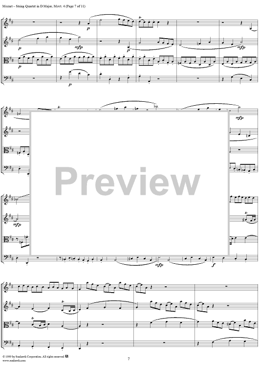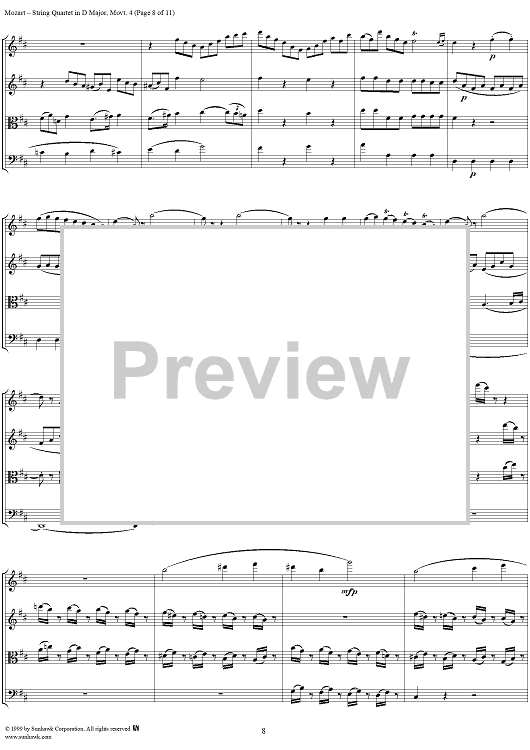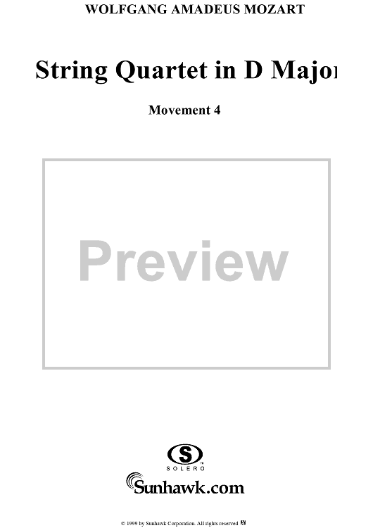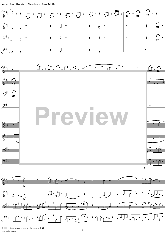 Digital Sheet Music for String Quartet No. 21, Movement 4 - Score by Wolfgang Amadeus Mozart scored for String Quartet; id:118571