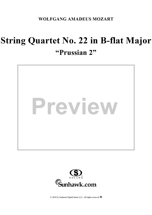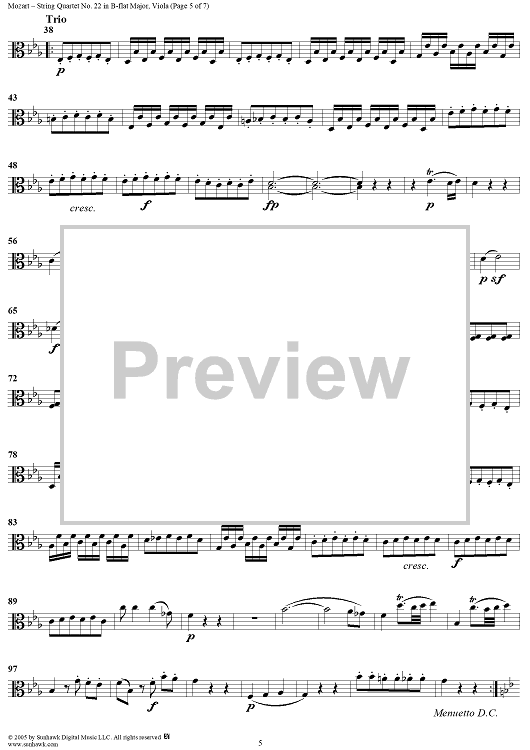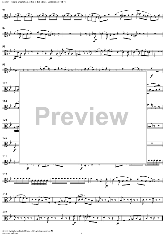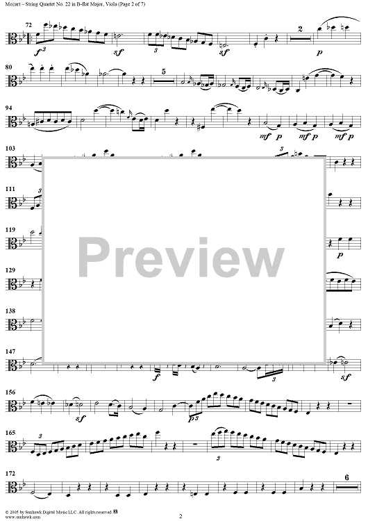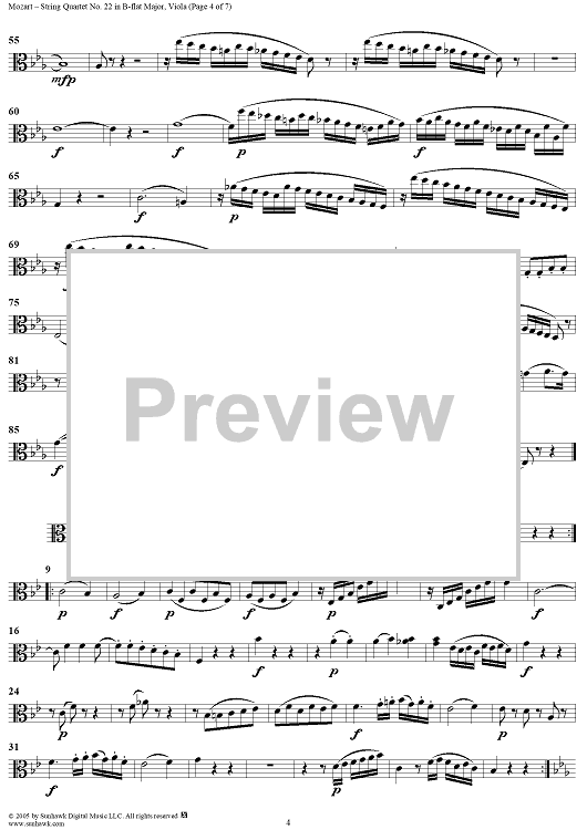 Digital Sheet Music for String Quartet No. 22 in B-flat Major, K589 - Viola by Wolfgang Amadeus Mozart scored for String Quartet; id:309275
