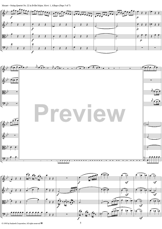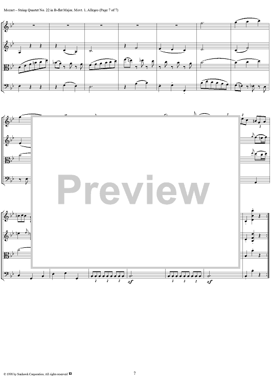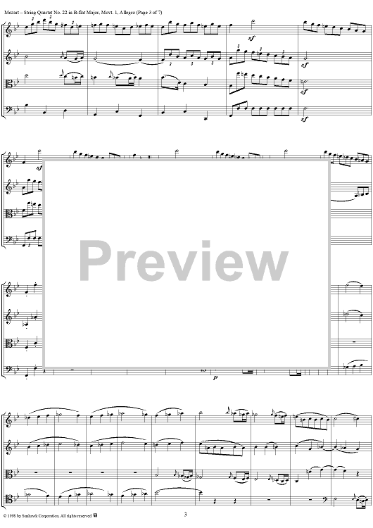 Digital Sheet Music for String Quartet No. 22, Movement 1 - Score by Wolfgang Amadeus Mozart scored for String Quartet; id:108877