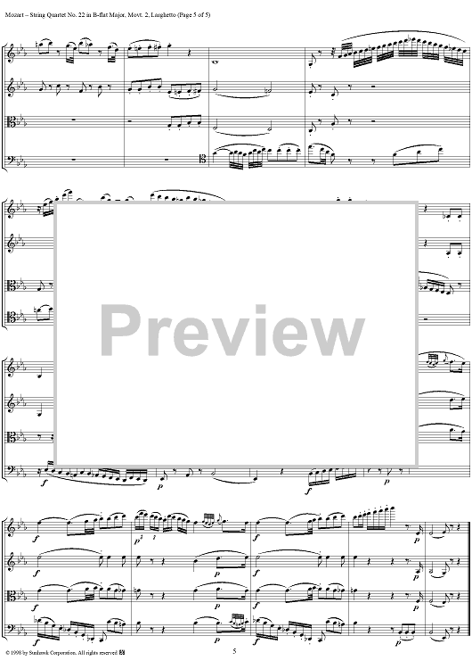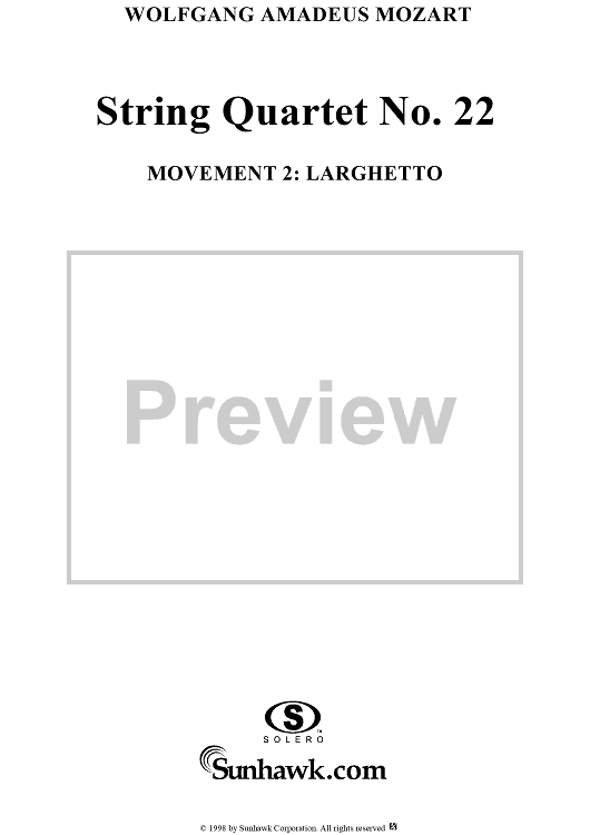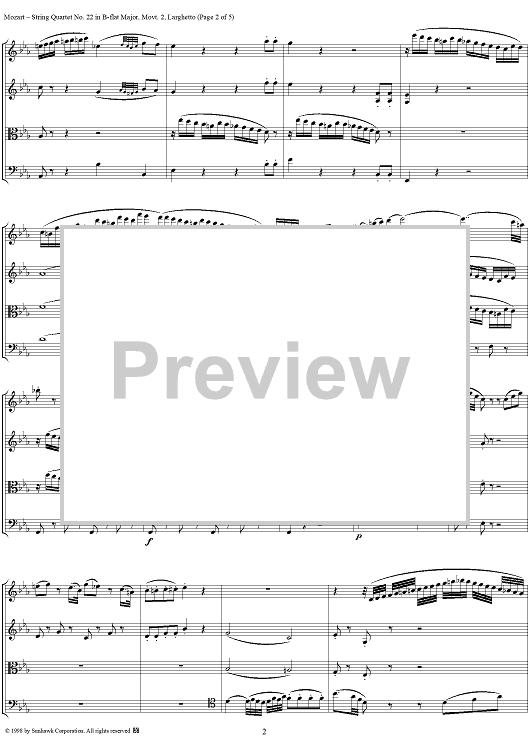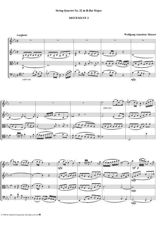 Digital Sheet Music for String Quartet No. 22, Movement 2 - Score by Wolfgang Amadeus Mozart scored for String Quartet; id:96050
