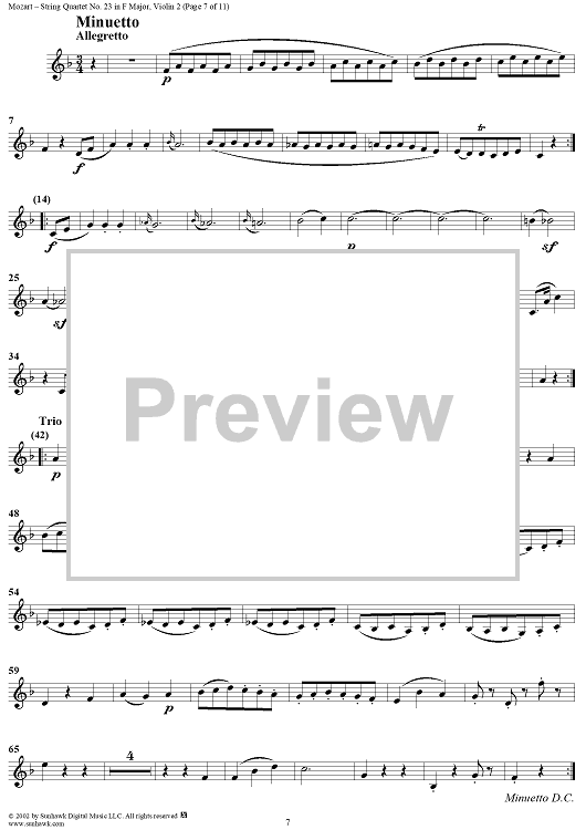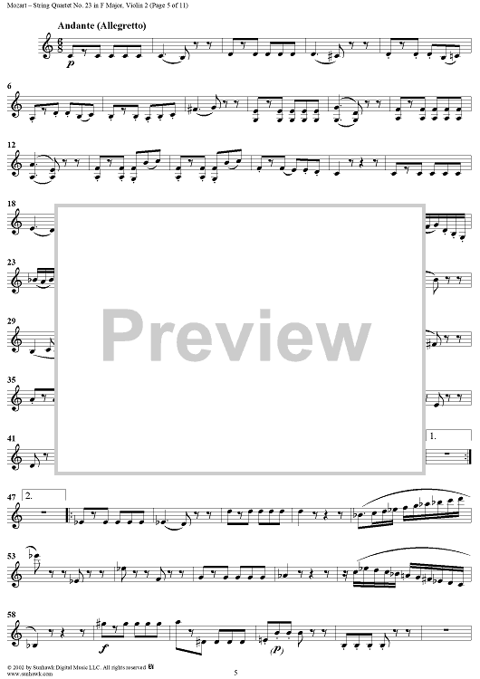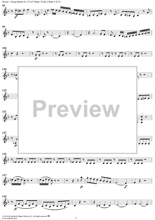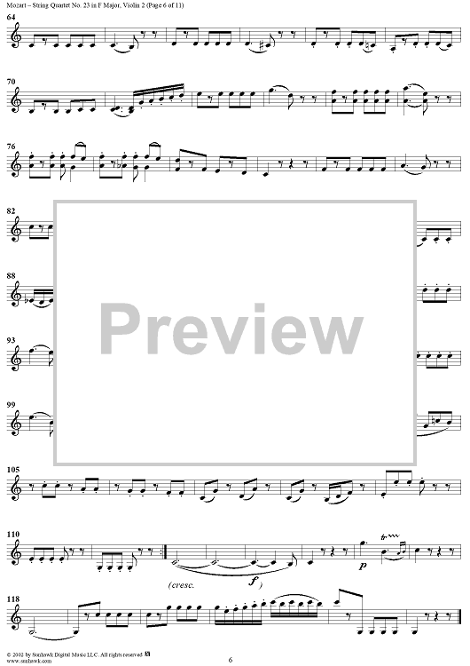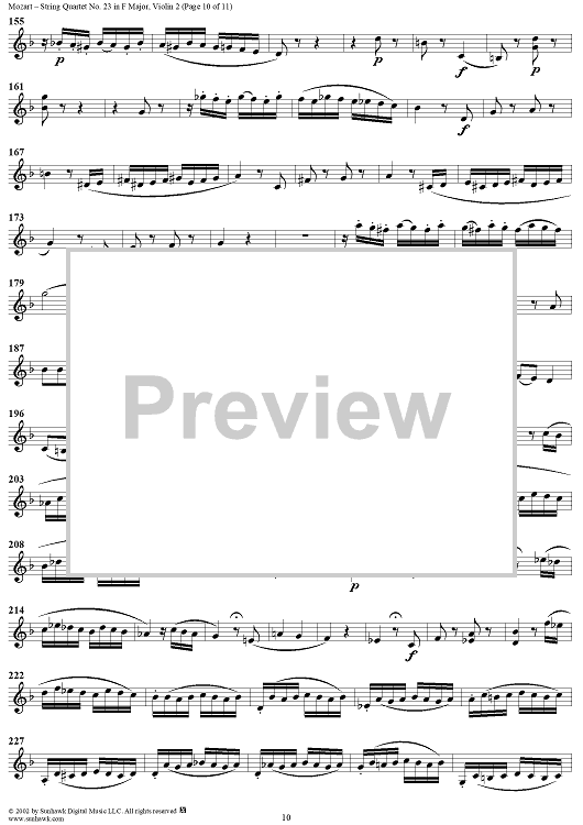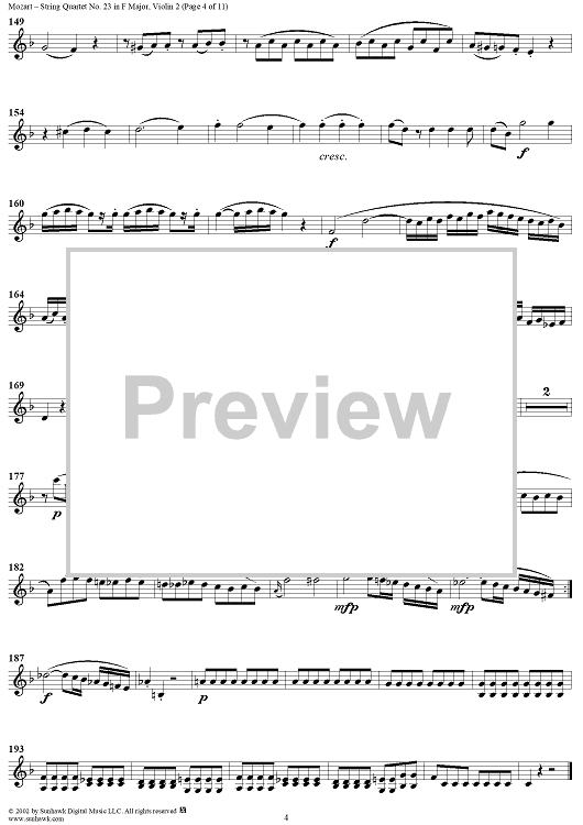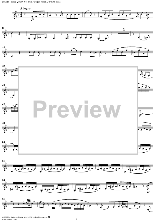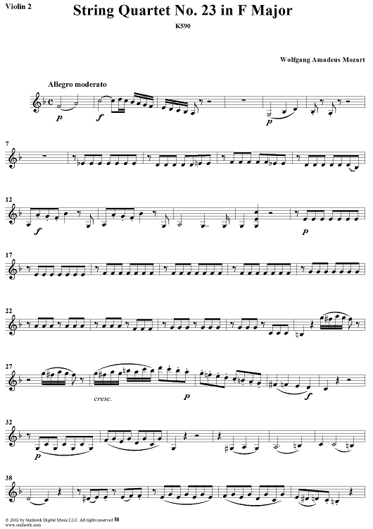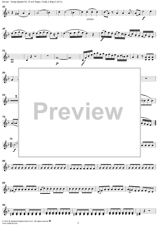 Digital Sheet Music for String Quartet No. 23 in F Major, K590 - Violin 2 by Wolfgang Amadeus Mozart scored for String Quartet; id:202112