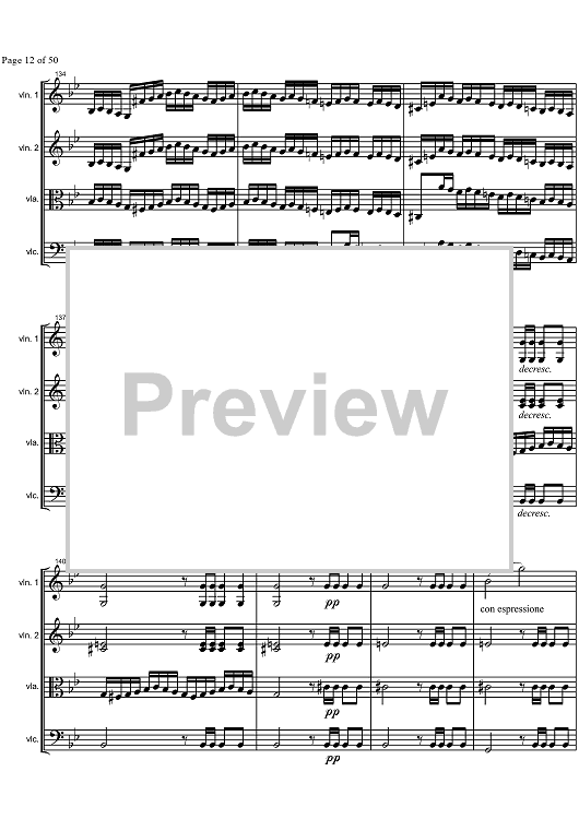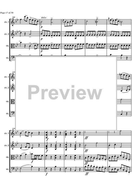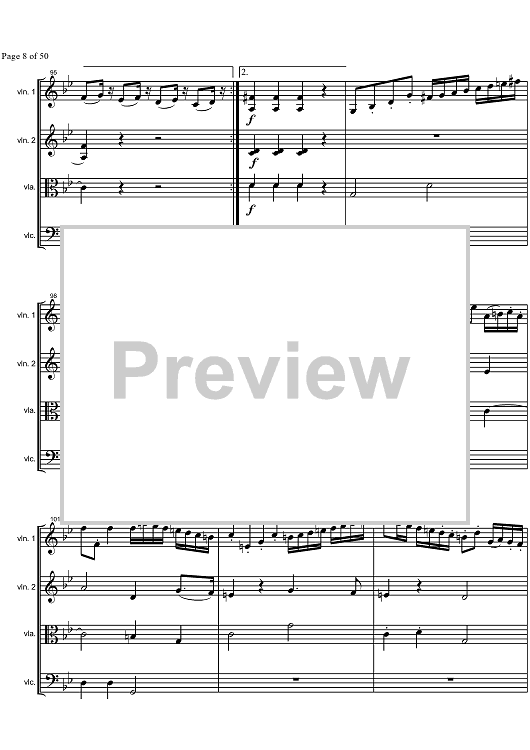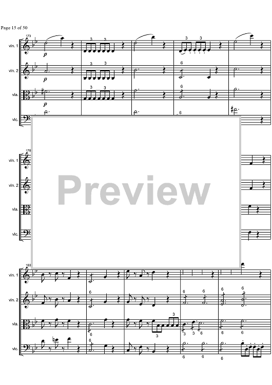 Digital Sheet Music for String Quartet No. 3 Bb Major D36 - Score by Franz Schubert scored for String Quartet; id:325820