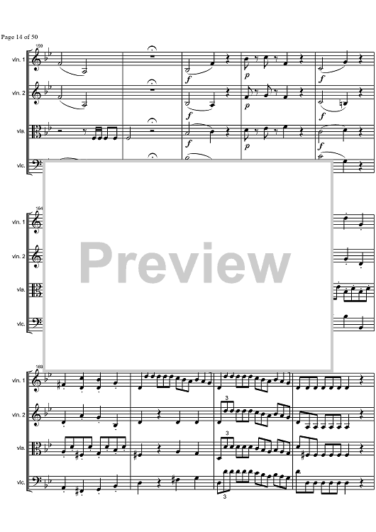 "String Quartet No. 3 Bb Major D36 - Score" Sheet Music by Franz Schubert