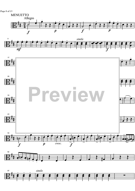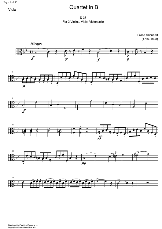 Digital Sheet Music for String Quartet No. 3 Bb Major D36 - Viola by Franz Schubert scored for String Quartet; id:325823