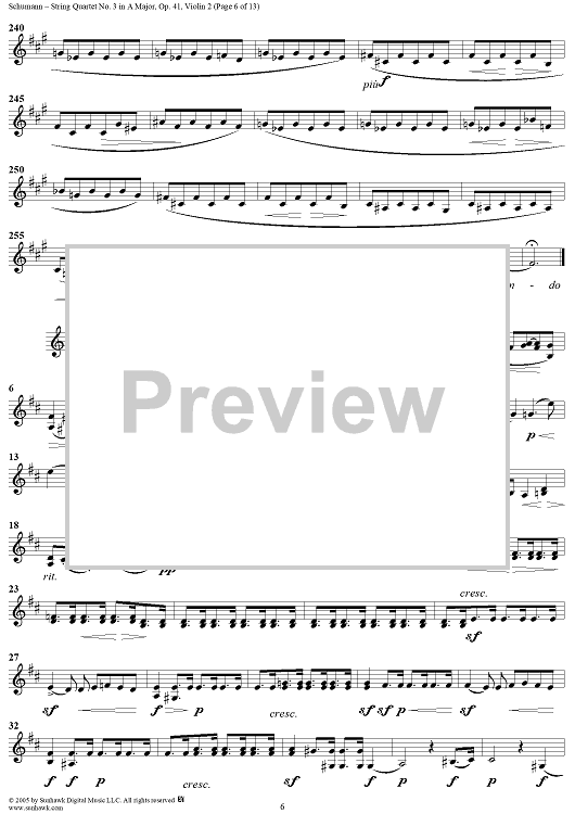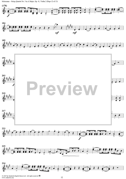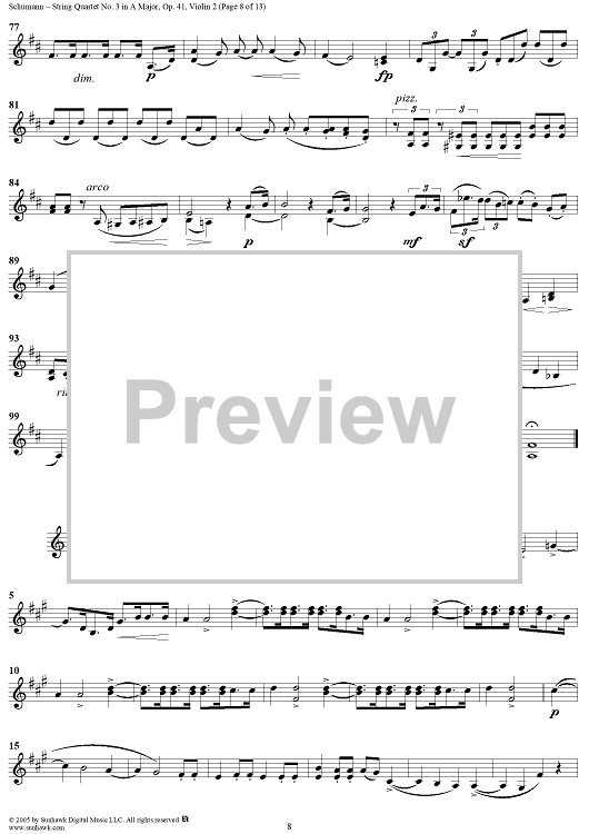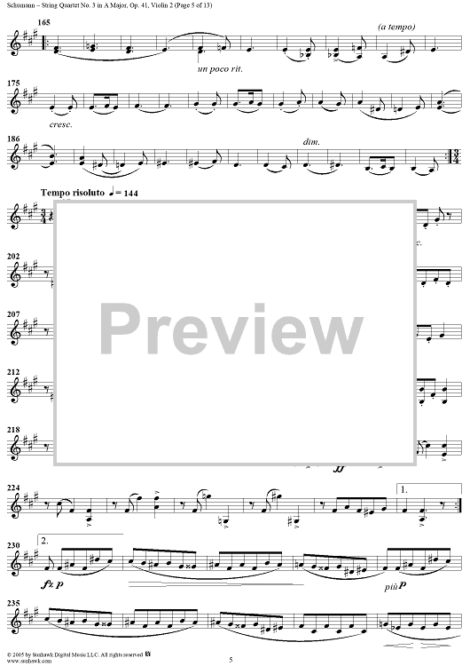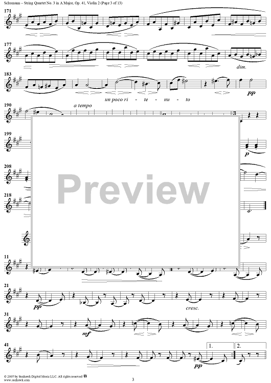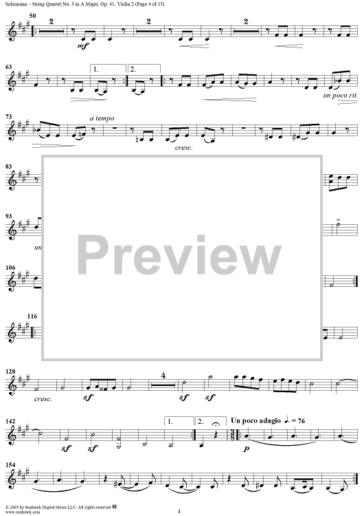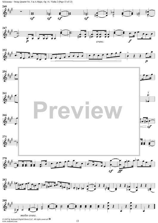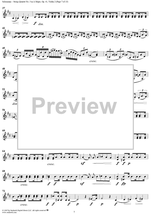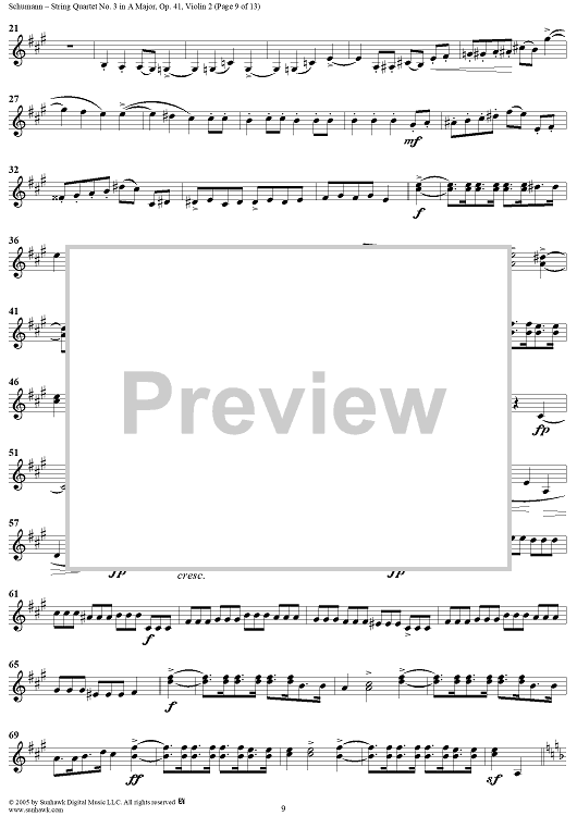 Digital Sheet Music for String Quartet No. 3 in A Major, Op. 41, No. 3 - Violin 2 by Robert Schumann scored for String Quartet; id:309710