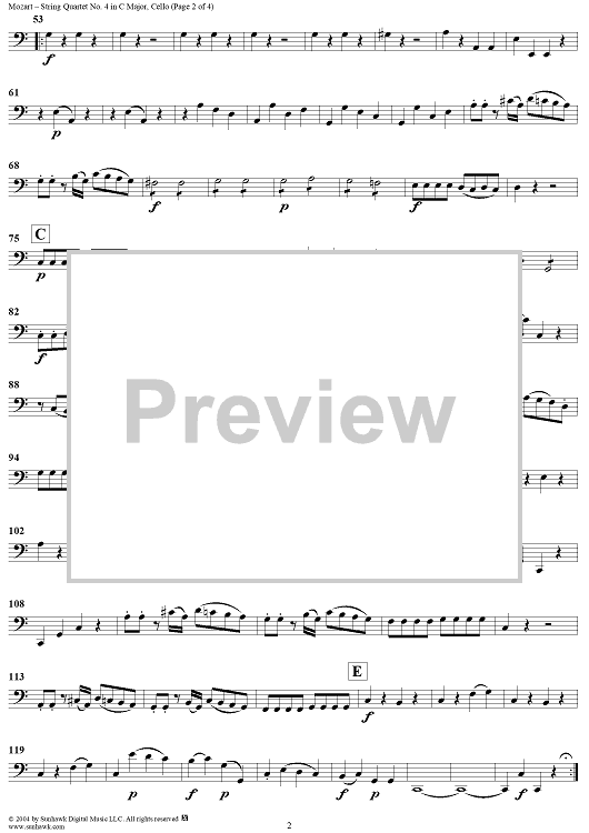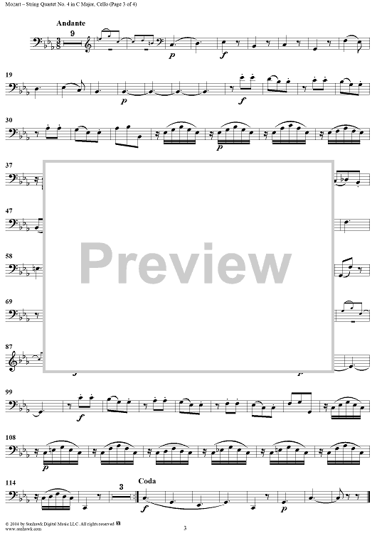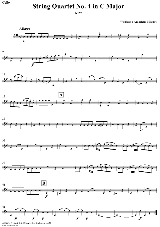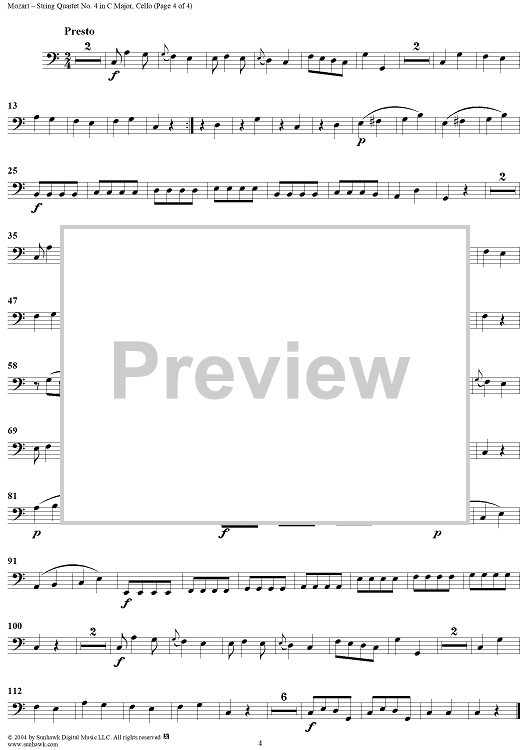 Digital Sheet Music for String Quartet No. 4 in C Major, K157 - Cello by Wolfgang Amadeus Mozart scored for String Quartet; id:304094