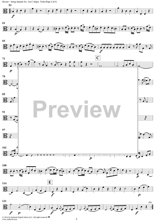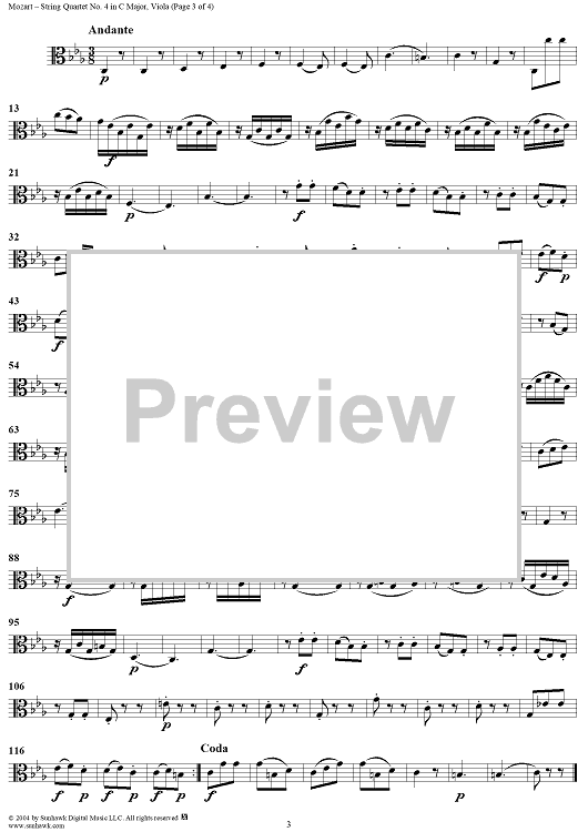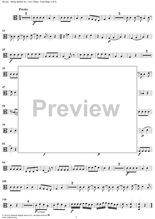 Digital Sheet Music for String Quartet No. 4 in C Major, K157 - Viola by Wolfgang Amadeus Mozart scored for String Quartet; id:304092